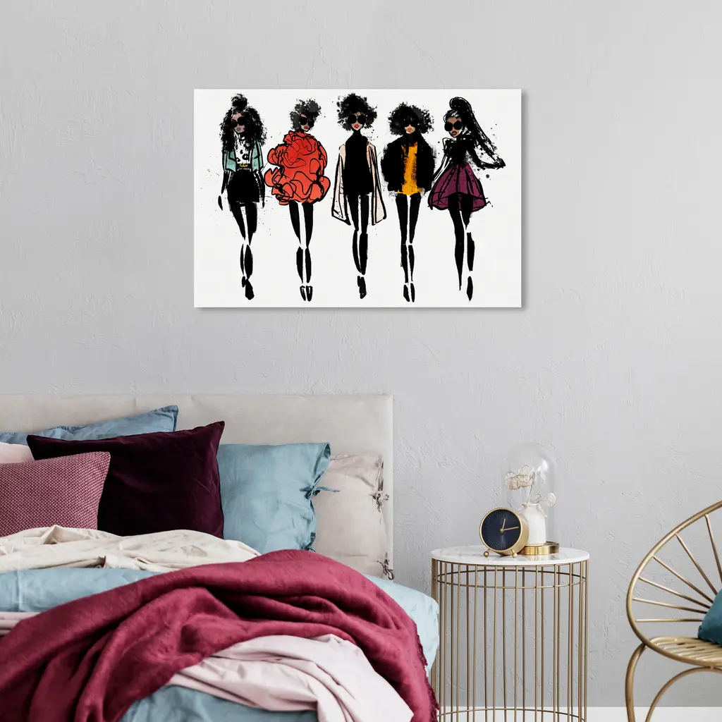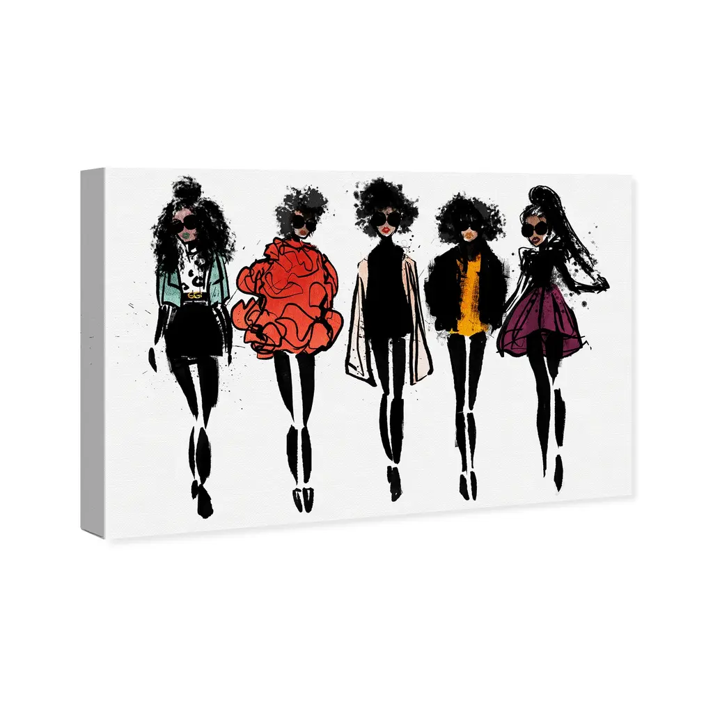 Girls of Color Line Up, is a skillfully made Modern & Contemporary art piece by real artists. With an overarching Black color, this fine art print by Wynwood Studio Canvas is the perfect finishing touch to your home décor theme. Features: This art piece has a horizontal orientation Fashion design with a Runway theme to bring you the perfect wall art Sustainable and forest friendly canvas print Professionally hand stretched in a 0.75 inch-thick sustainable wood frame Arrives ready to hang with pre-installed hooks for easy hanging. Nail and hanger also included Printed using ultra-premium and fade resistant inks to guarantee high definition and vivid colors Available in several size options Proudly made in the USA