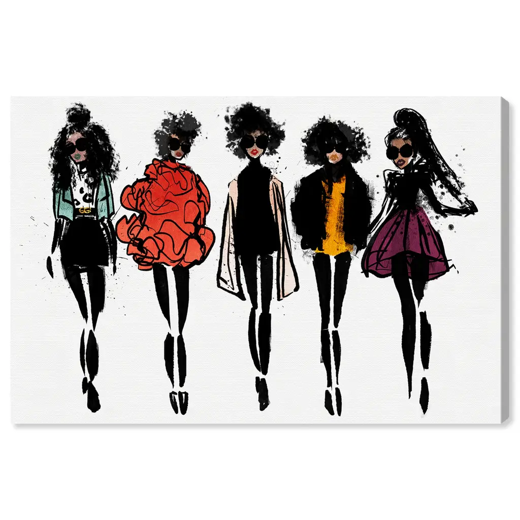 Girls of Color Line Up, is a skillfully made Modern & Contemporary art piece by real artists. With an overarching Black color, this fine art print by Wynwood Studio Canvas is the perfect finishing touch to your home décor theme. Features: This art piece has a horizontal orientation Fashion design with a Runway theme to bring you the perfect wall art Sustainable and forest friendly canvas print Professionally hand stretched in a 0.75 inch-thick sustainable wood frame Arrives ready to hang with pre-installed hooks for easy hanging. Nail and hanger also included Printed using ultra-premium and fade resistant inks to guarantee high definition and vivid colors Available in several size options Proudly made in the USA
