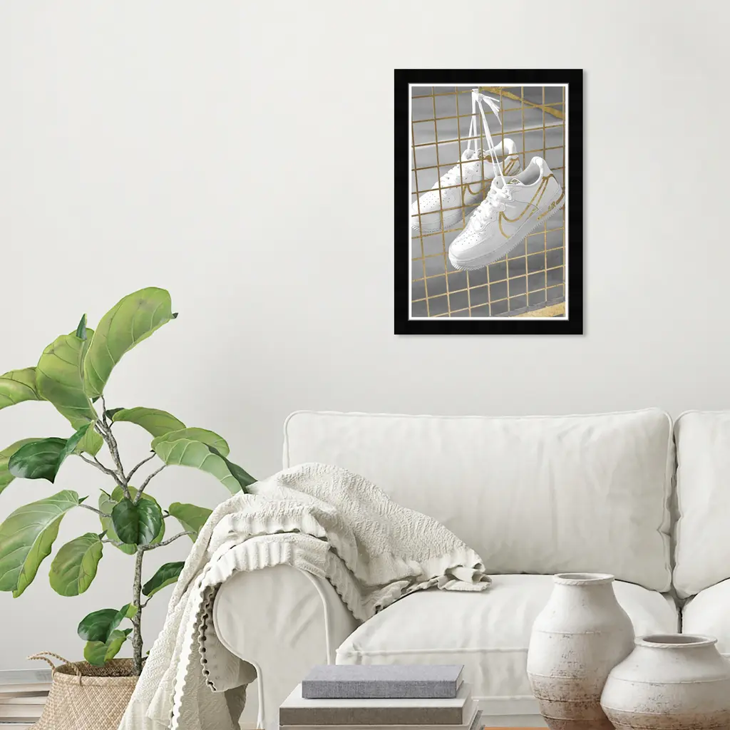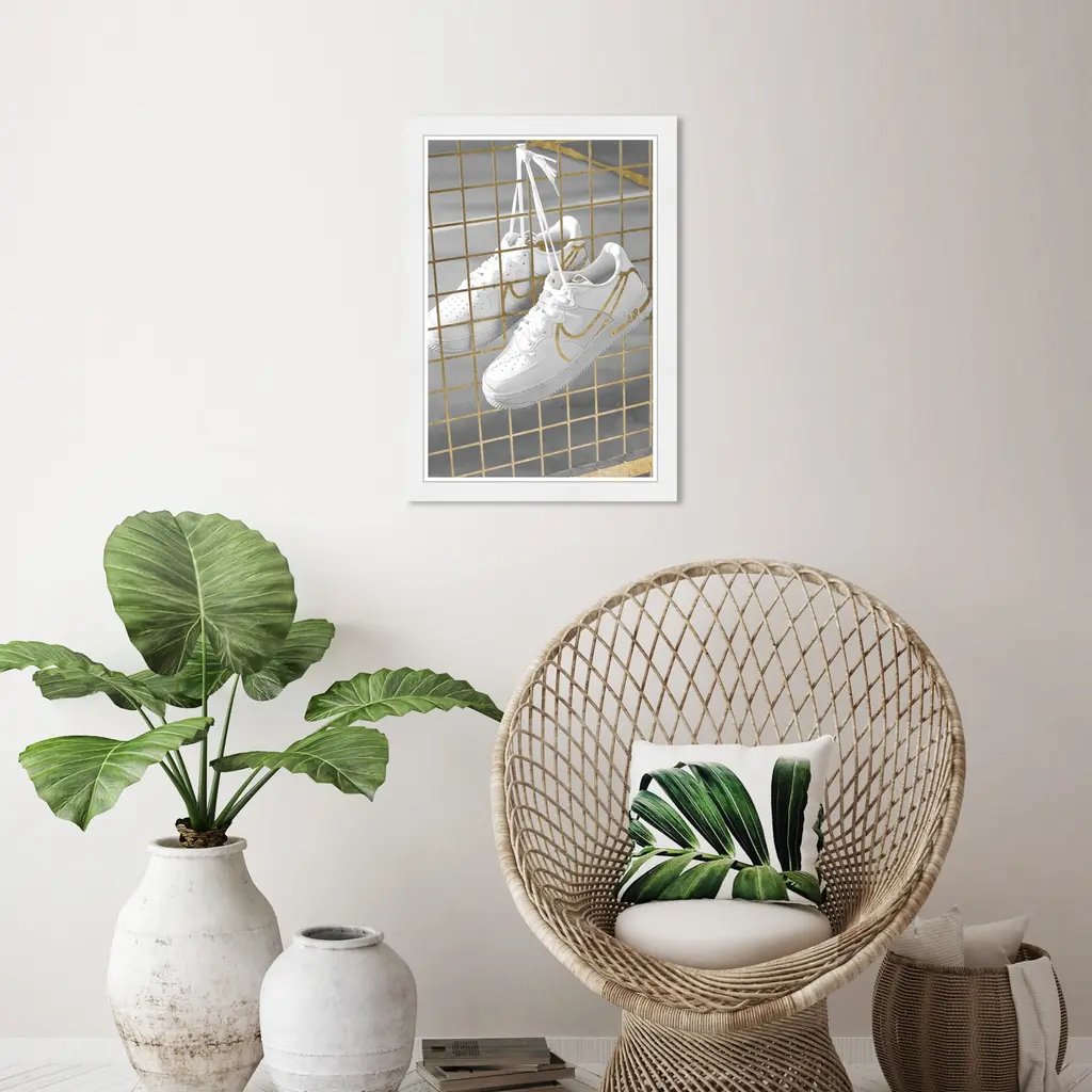Golden Fence Sneakers, is a skillfully made Modern & Contemporary art piece by real artists. With an overarching White color, this fine art print by Wynwood Studio Canvas is the perfect finishing touch to your home décor theme. Features: This art piece has a vertical orientation Fashion design with a Shoes theme to bring you the perfect wall art Sustainable and forest friendly framed print Professionally hand framed in black picture frame Arrives ready to hang with pre-installed hooks for easy hanging. Nail and hanger also included Printed using ultra-premium and fade resistant inks to guarantee high definition and vivid colors Available in several size options Proudly made in the USA