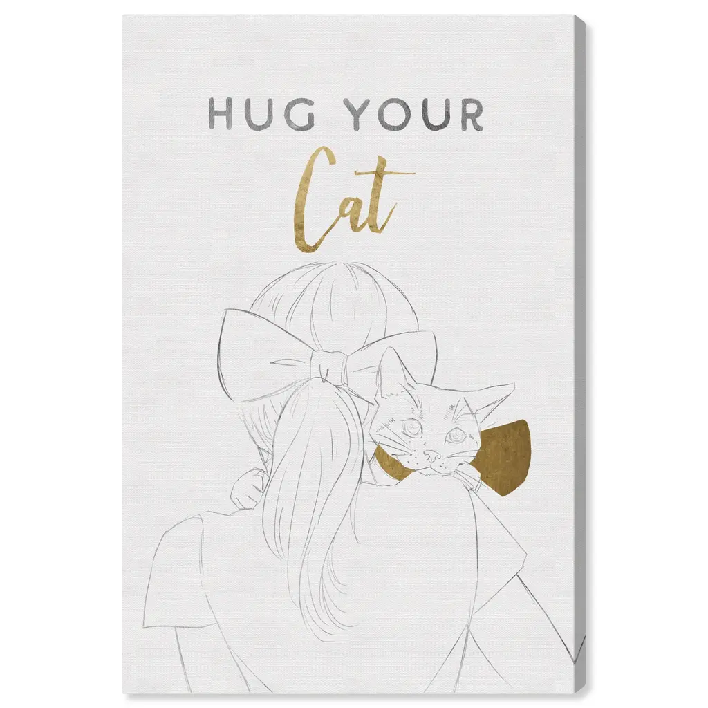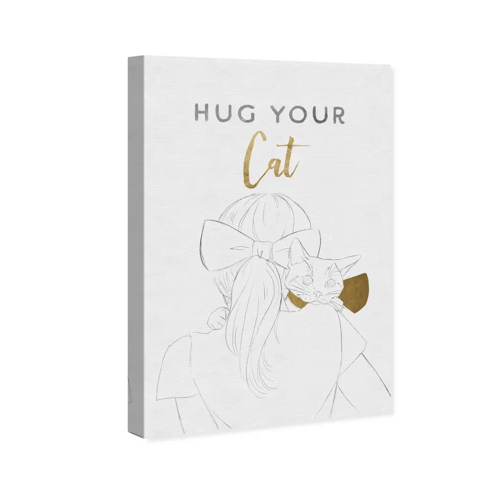 Wynwood Studio Canvas Fashion And Glam Hug Your Cat White And Metallic Gold Modern & Contemporary Wall Art Canvas Print - 24 X 16