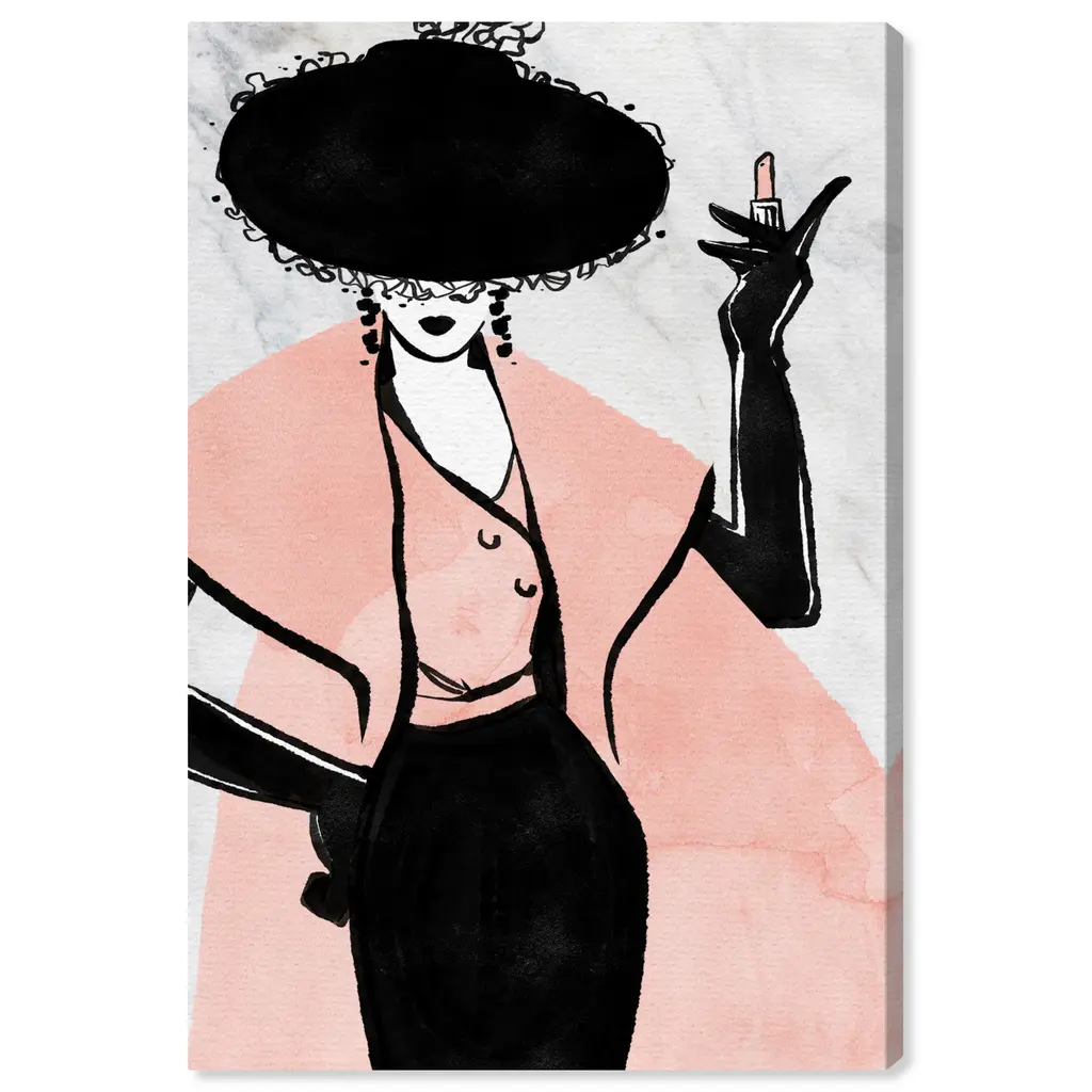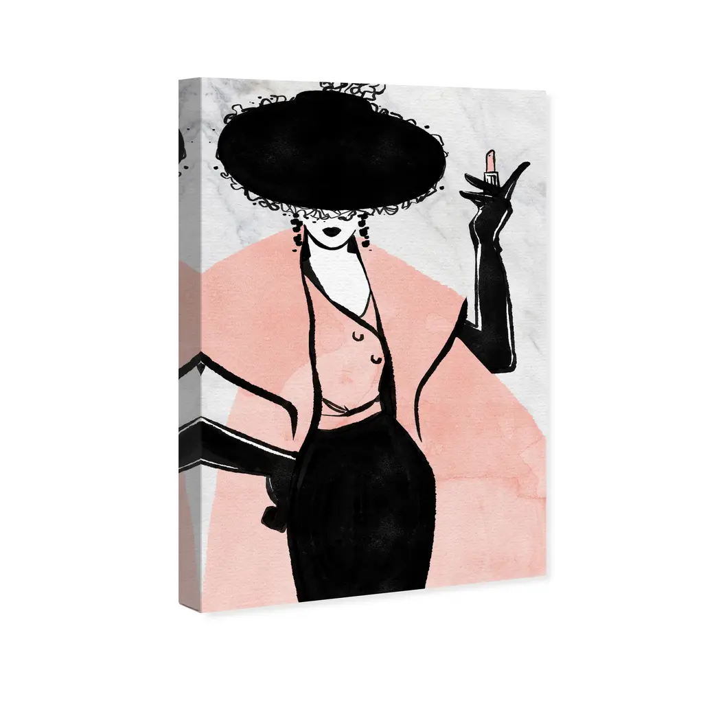 Wynwood Studio Canvas Fashion And Glam Lady With The Glam Black And Pastel Pink Glam Wall Art Canvas Print - 30 X 20