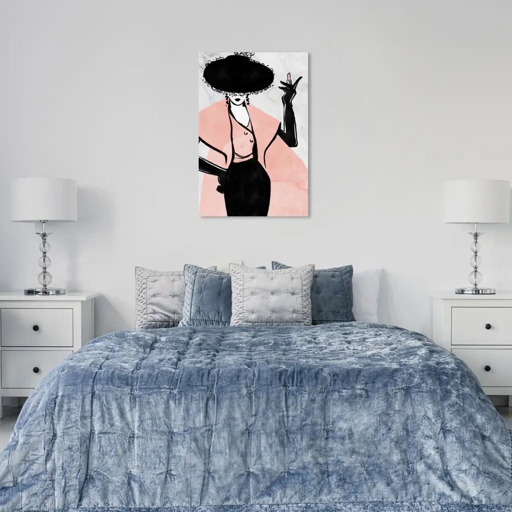 Wynwood Studio Canvas Fashion And Glam Lady With The Glam Black And Pastel Pink Glam Wall Art Canvas Print - 36 X 24