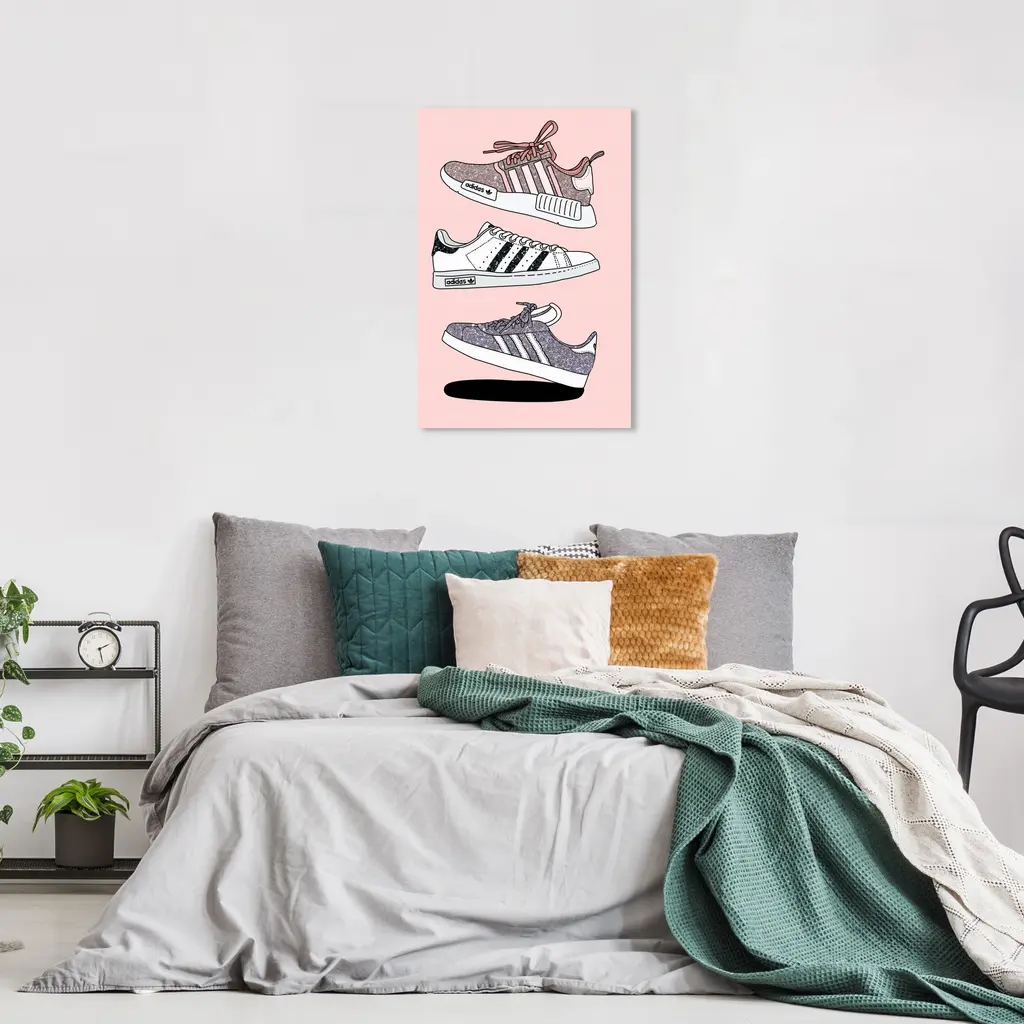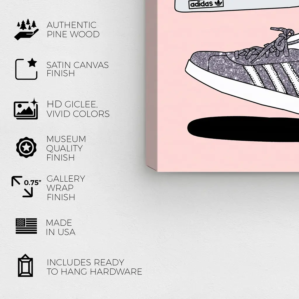 Sparkle Sneaker Collection, is a skillfully made Glam art piece by real artists. With an overarching Pink color, this fine art print by Wynwood Studio Canvas is the perfect finishing touch to your home décor theme. Features: This art piece has a vertical orientation Fashion design with a Shoes theme to bring you the perfect wall art Sustainable and forest friendly canvas print Professionally hand stretched in a 0.75 inch-thick sustainable wood frame Arrives ready to hang with pre-installed hooks for easy hanging. Nail and hanger also included Printed using ultra-premium and fade resistant inks to guarantee high definition and vivid colors Available in several size options Proudly made in the USA