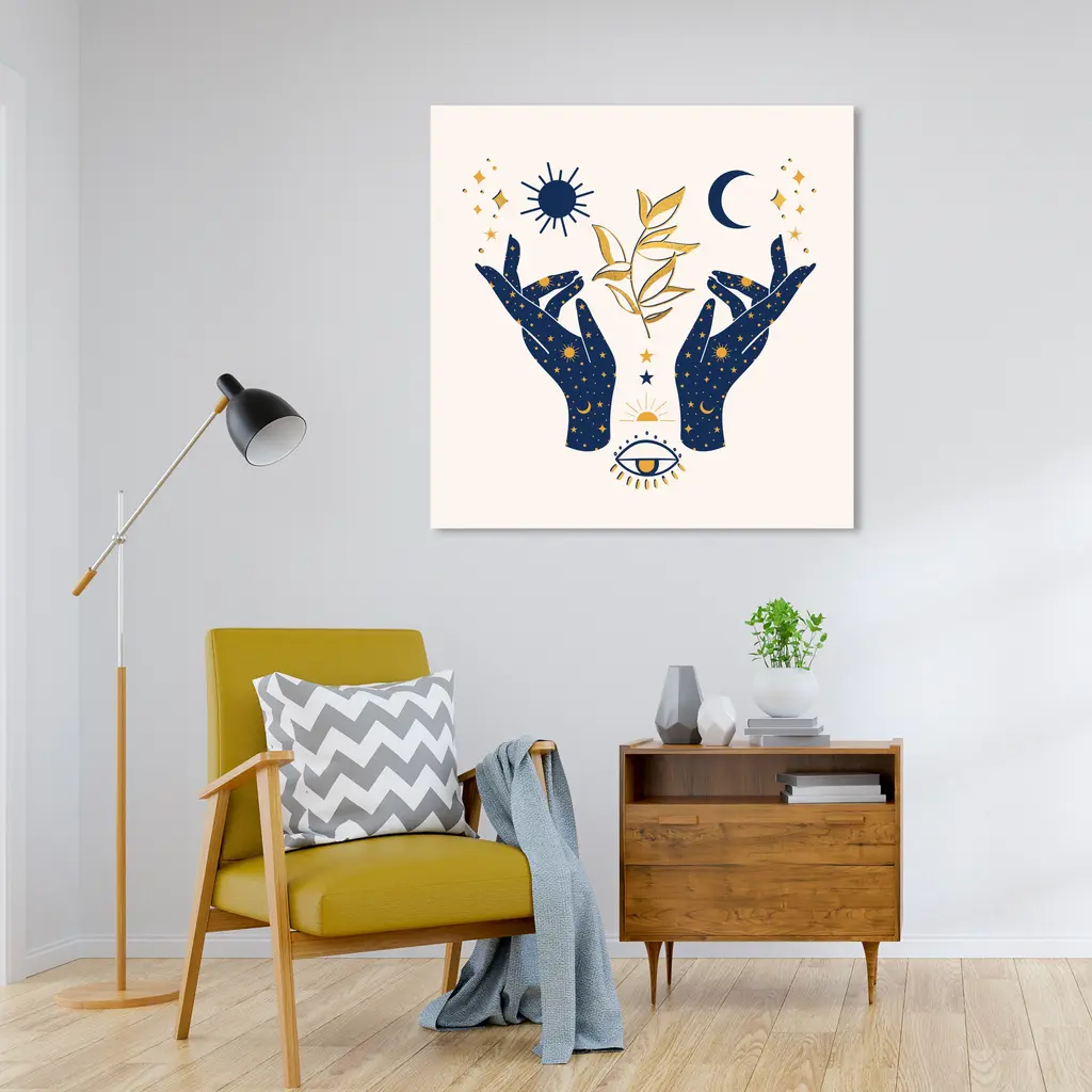 Fate Hands , is a skillfully made Modern & Contemporary art piece by real artists. With an overarching Gold color, this fine art print by Wynwood Studio Canvas is the perfect finishing touch to your home décor theme. Features: This art piece has a square orientation Floral design with a Botanicals theme to bring you the perfect wall art Sustainable and forest friendly canvas print Professionally hand stretched in a 0.75 inch-thick sustainable wood frame Arrives ready to hang with pre-installed hooks for easy hanging. Nail and hanger also included Printed using ultra-premium and fade resistant inks to guarantee high definition and vivid colors Available in several size options Proudly made in the USA