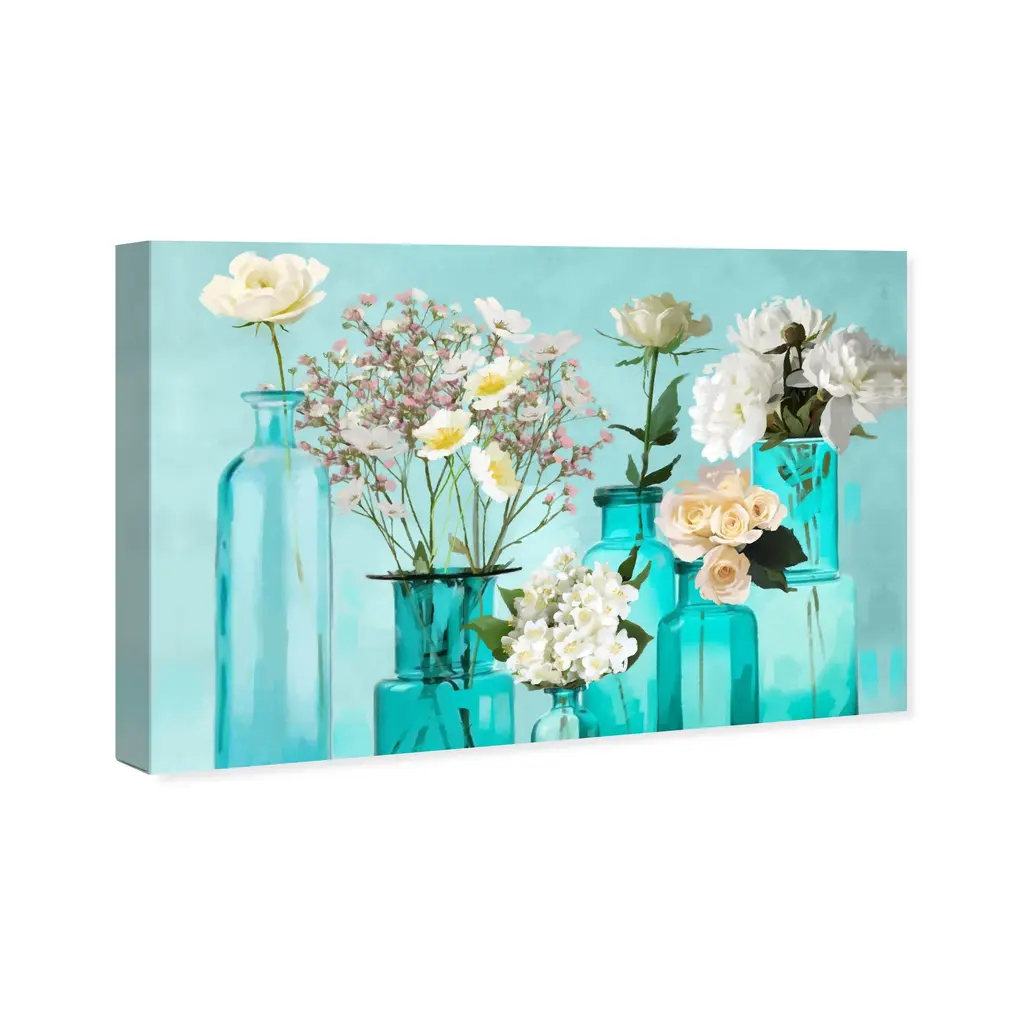 Wynwood Studio Canvas Floral And Botanical Glassy Teal Flowers Blue And Turquoise Modern & Contemporary Wall Art Canvas Print - 24 X 36