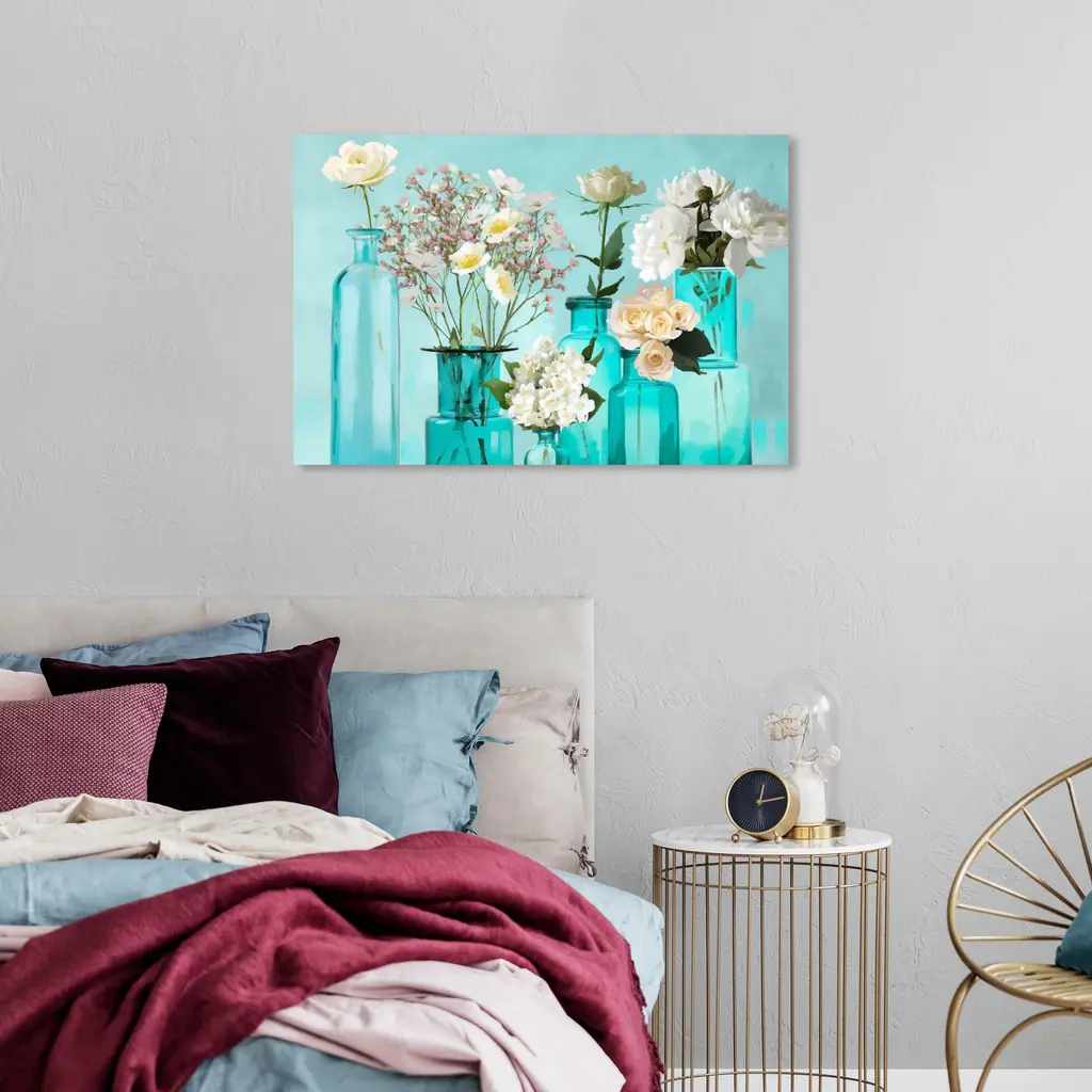 Glassy Teal Flowers, is a skillfully made Modern & Contemporary art piece by real artists. With an overarching Blue color, this fine art print by Wynwood Studio Canvas is the perfect finishing touch to your home décor theme. Features: This art piece has a horizontal orientation Floral design with a Florals theme to bring you the perfect wall art Sustainable and forest friendly canvas print Professionally hand stretched in a 0.75 inch-thick sustainable wood frame Arrives ready to hang with pre-installed hooks for easy hanging. Nail and hanger also included Printed using ultra-premium and fade resistant inks to guarantee high definition and vivid colors Available in several size options Proudly made in the USA