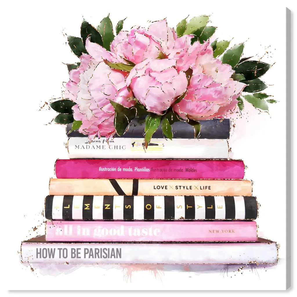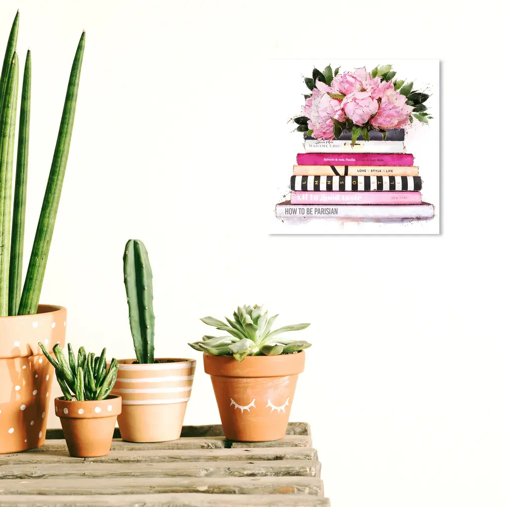 Wynwood Studio Canvas Floral And Botanical Her Girl Boss Books Pink And Glam Wall Art Canvas Print - 12 X 12
