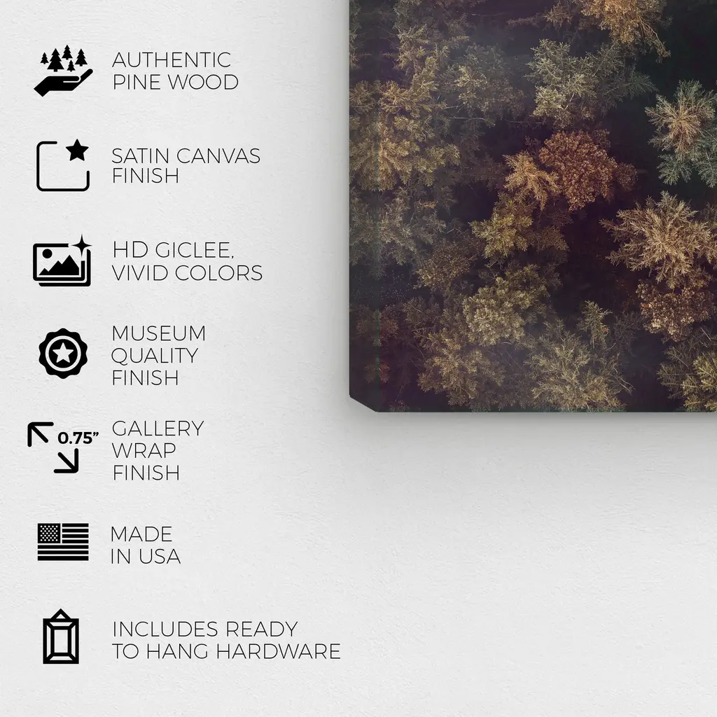 Top of Trees, is a skillfully made Modern & Contemporary art piece by real artists. With an overarching Green color, this fine art print by Wynwood Studio Canvas is the perfect finishing touch to your home décor theme. Features: This art piece has a horizontal orientation Floral design with a Trees theme to bring you the perfect wall art Sustainable and forest friendly canvas print Professionally hand stretched in a 0.75 inch-thick sustainable wood frame Arrives ready to hang with pre-installed hooks for easy hanging. Nail and hanger also included Printed using ultra-premium and fade resistant inks to guarantee high definition and vivid colors Available in several size options Proudly made in the USA