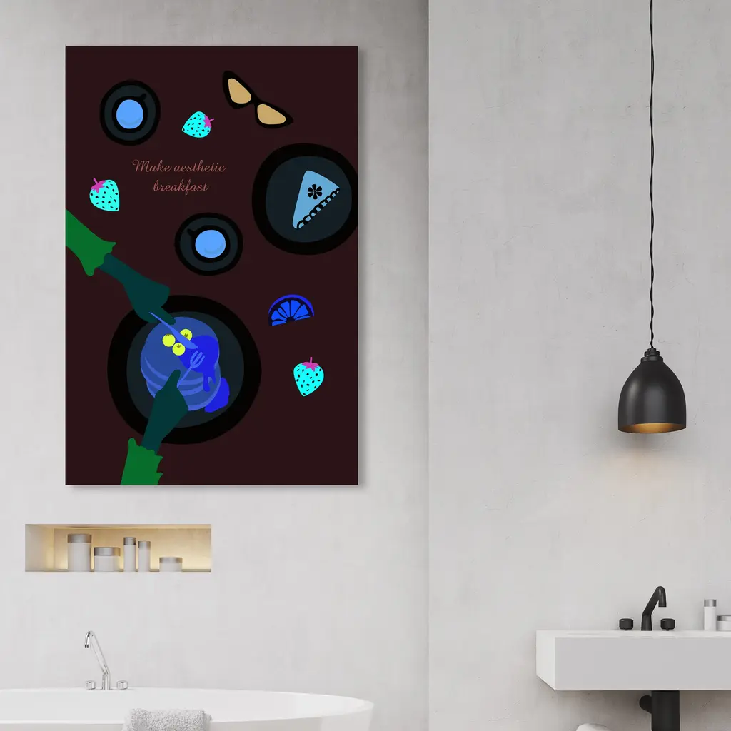 Aesthetic Breakfast, is a skillfully made Modern & Contemporary art piece by real artists. With an overarching Blue color, this fine art print by Wynwood Studio Canvas is the perfect finishing touch to your home décor theme. Features: This art piece has a vertical orientation Food & Beverage design with a Meals theme to bring you the perfect wall art Sustainable and forest friendly canvas print Professionally hand stretched in a 0.75 inch-thick sustainable wood frame Arrives ready to hang with pre-installed hooks for easy hanging. Nail and hanger also included Printed using ultra-premium and fade resistant inks to guarantee high definition and vivid colors Available in several size options Proudly made in the USA