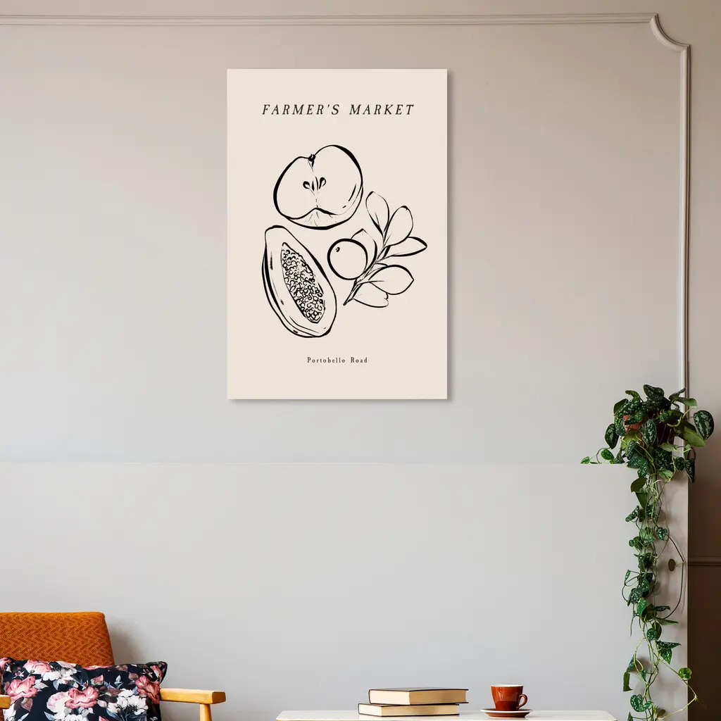 Farmer Market Fruits, is a skillfully made Modern & Contemporary art piece by real artists. With an overarching Black color, this fine art print by Wynwood Studio Canvas is the perfect finishing touch to your home décor theme. Features: This art piece has a vertical orientation Food & Beverage design with a Fruits theme to bring you the perfect wall art Sustainable and forest friendly canvas print Professionally hand stretched in a 0.75 inch-thick sustainable wood frame Arrives ready to hang with pre-installed hooks for easy hanging. Nail and hanger also included Printed using ultra-premium and fade resistant inks to guarantee high definition and vivid colors Available in several size options Proudly made in the USA