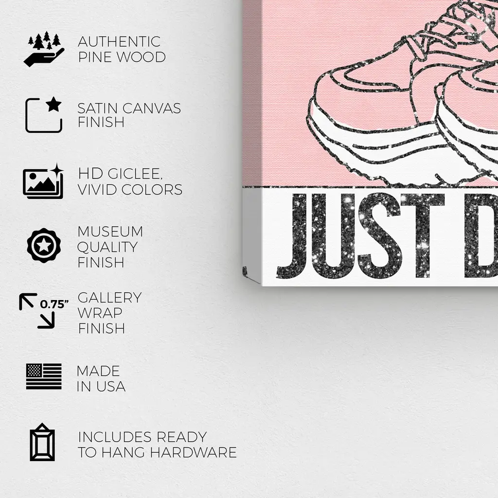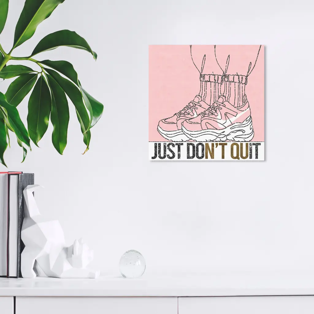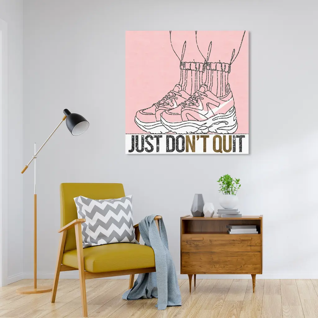 Build your decor from the ground up with this success and entrepreneurship wall art piece. Let your walls speak words of wisdom to everyone who passes through. This composition will give your workspace, office or home a modern style and the sense of motivation it was missingSneaker Don't Quit, is a skillfully made Glam art piece by real artists. With an overarching Pink color, this fine art print by Wynwood Studio Canvas is the perfect finishing touch to your home décor theme. Features: This art piece has a square orientation Success and Entrepreneurial design with a Entrepreneur theme to bring you the perfect wall art Sustainable and forest friendly canvas print Professionally hand stretched in a 0.75 inch-thick sustainable wood frame Arrives ready to hang with pre-installed hooks for easy hanging. Nail and hanger also included Printed using ultra-premium and fade resistant inks to guarantee high definition and vivid colors Available in several size options Proudly made in the USA