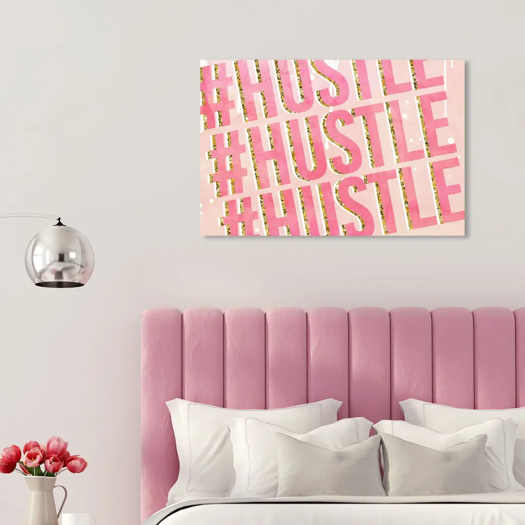 Hustle On Repeat, is a skillfully made Glam art piece by real artists. With an overarching Pink color, this fine art print by Wynwood Studio Canvas is the perfect finishing touch to your home décor theme. Features: This art piece has a horizontal orientation Typography and Symbols design with a Quotes and Sayings theme to bring you the perfect wall art Sustainable and forest friendly canvas print Professionally hand stretched in a 0.75 inch-thick sustainable wood frame Arrives ready to hang with pre-installed hooks for easy hanging. Nail and hanger also included Printed using ultra-premium and fade resistant inks to guarantee high definition and vivid colors Available in several size options Proudly made in the USA
