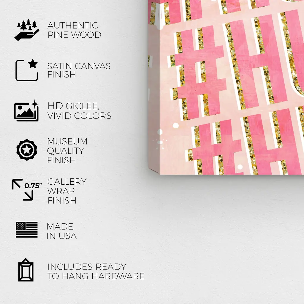 Wynwood Studio Canvas Typography And Quotes Hustle On Repeat Pink And Metallic Gold Glam Wall Art Canvas Print - 16 X 24