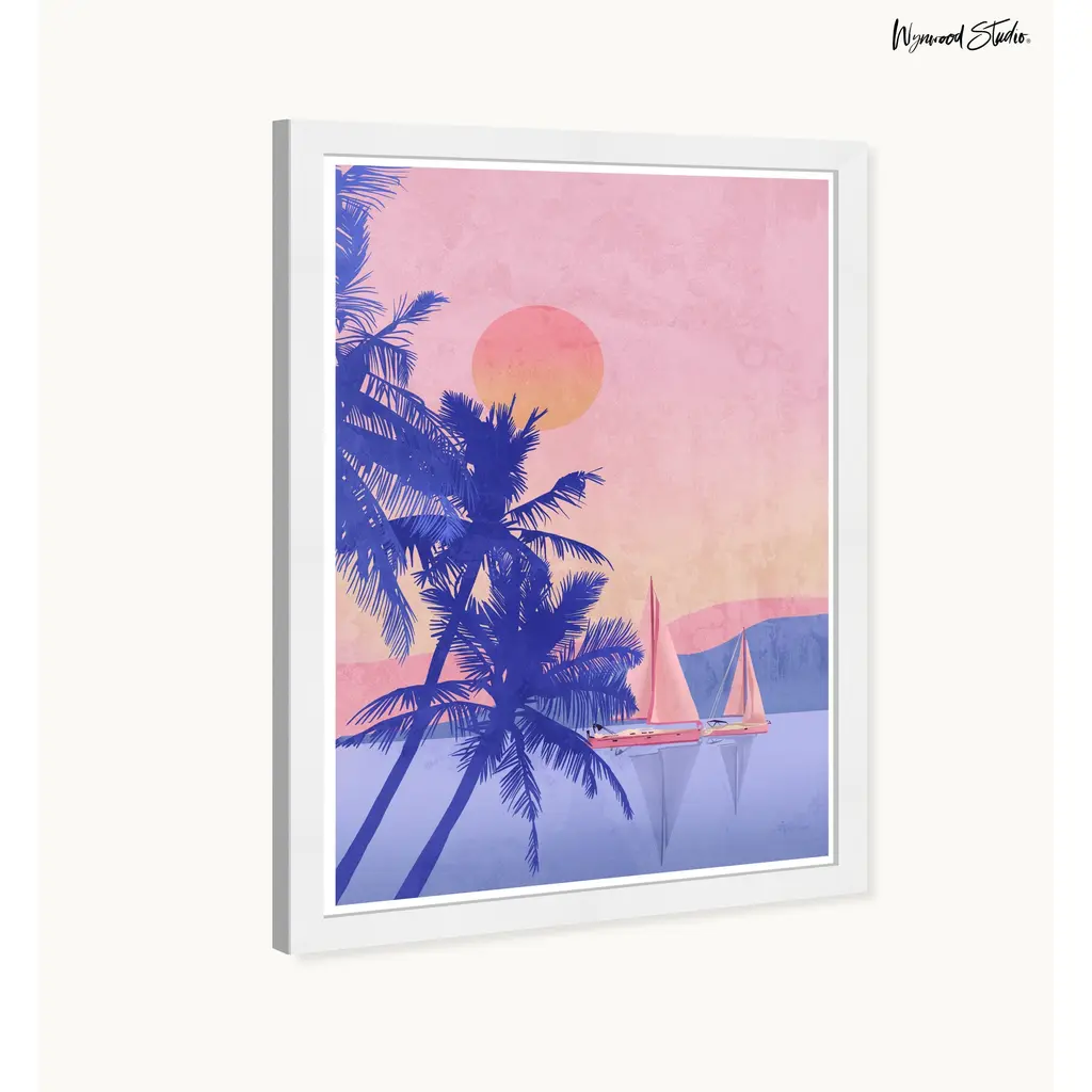 Wynwood Studio Coral Coastal Sailing Framed Beachfront Coastal Prints - 15 X 21 - White
