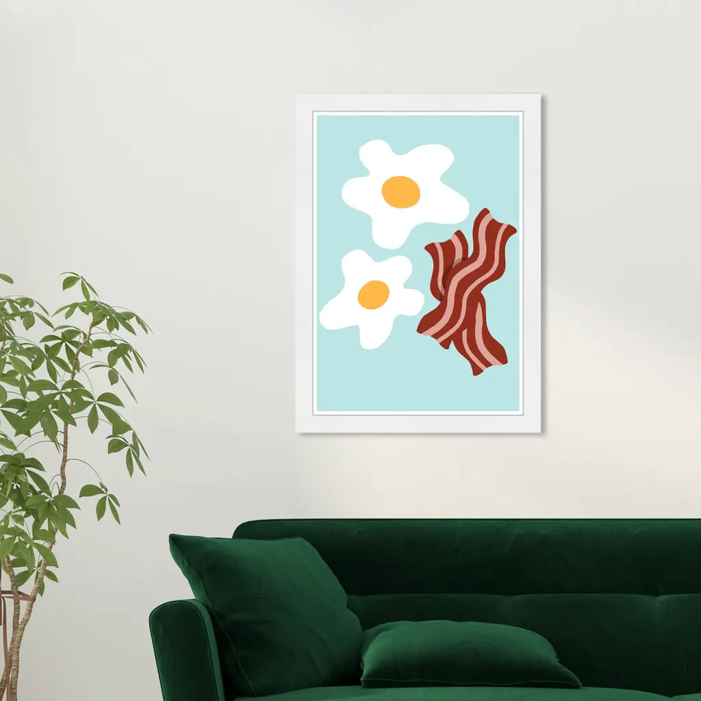 Eggs and Bacon, is a skillfully made Modern & Contemporary art piece by real artists. With an overarching Blue color, this fine art framed print by Wynwood Studio is the perfect finishing touch to your home decor theme. Features: This art piece has a vertical orientation Food & Beverage design with a Food theme to bring you the perfect wall art Sustainable and forest friendly Professionally hand stretched in a 1.5 inch-thick sustainable plastic frame Arrives ready to hang with pre-installed hooks for easy hanging. Nail and hanger also included Printed using ultra-premium and fade resistant inks to guarantee high definition and vivid colors Available in several size options Proudly made in the USA