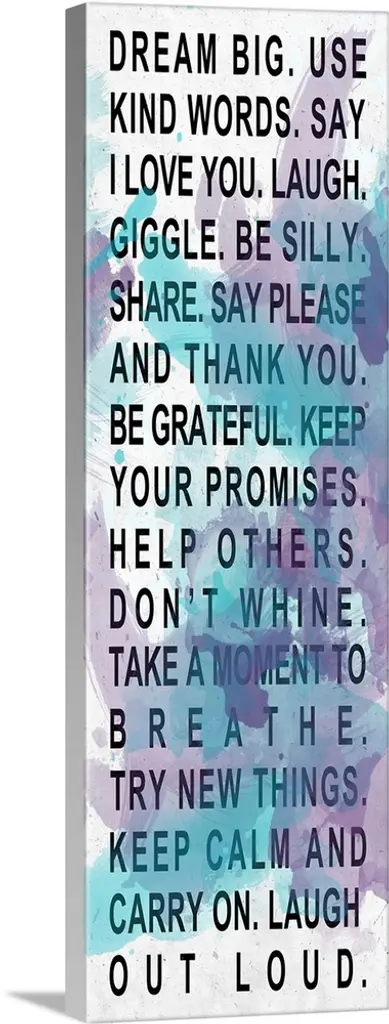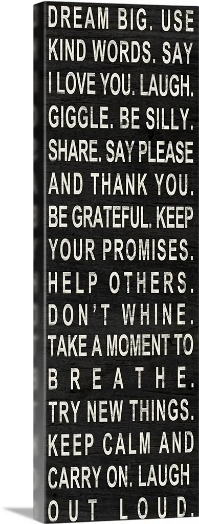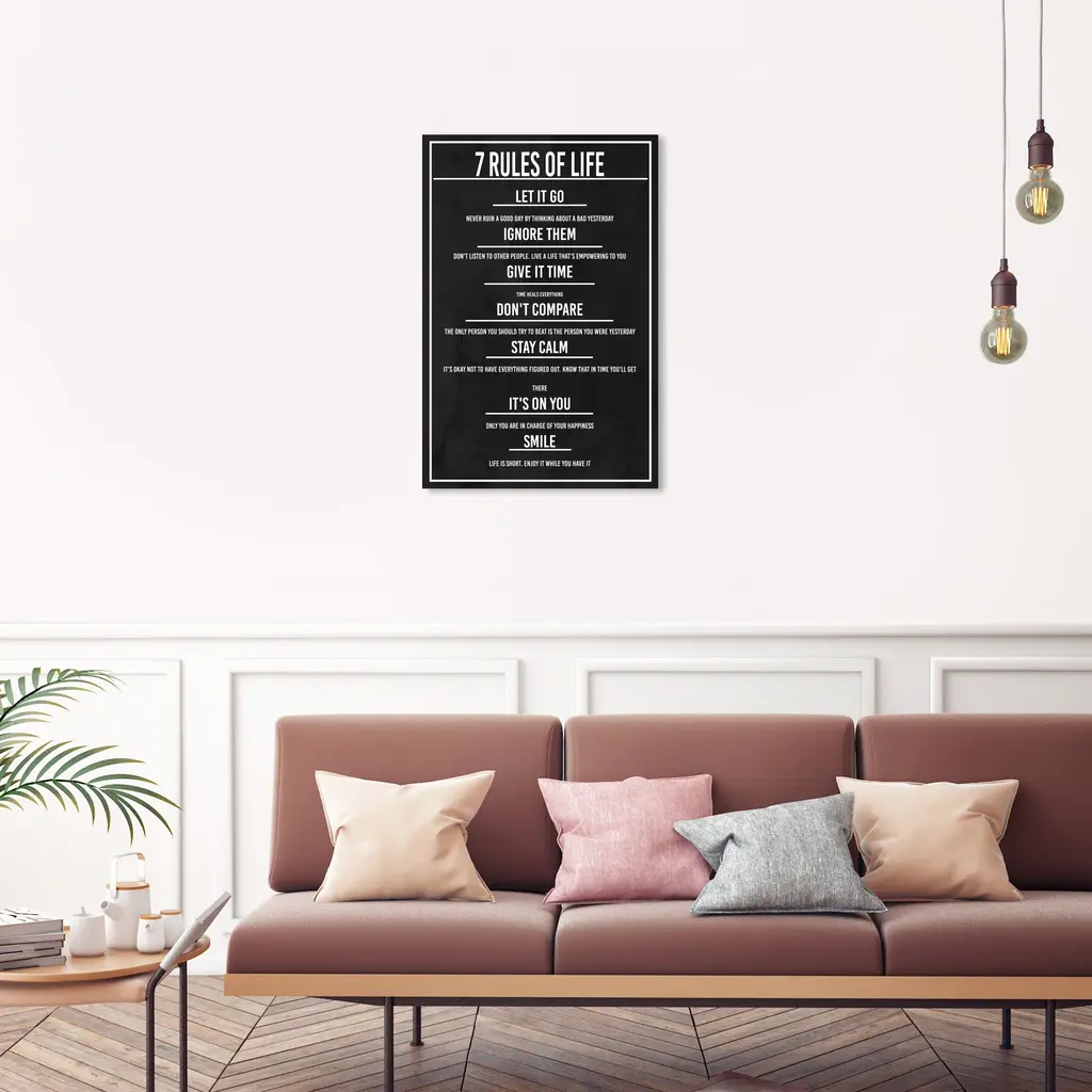 7 Rules of Life Dusk, is a skillfully made Modern & Contemporary art piece by real artists. With an overarching Black color, this fine art print by Wynwood Studio Canvas is the perfect finishing touch to your home décor theme. Features: This art piece has a vertical orientation Fashion design with a Lifestyle theme to bring you the perfect wall art Sustainable and forest friendly canvas print Professionally hand stretched in a 0.75 inch-thick sustainable wood frame Arrives ready to hang with pre-installed hooks for easy hanging. Nail and hanger also included Printed using ultra-premium and fade resistant inks to guarantee high definition and vivid colors Available in several size options Proudly made in the USA