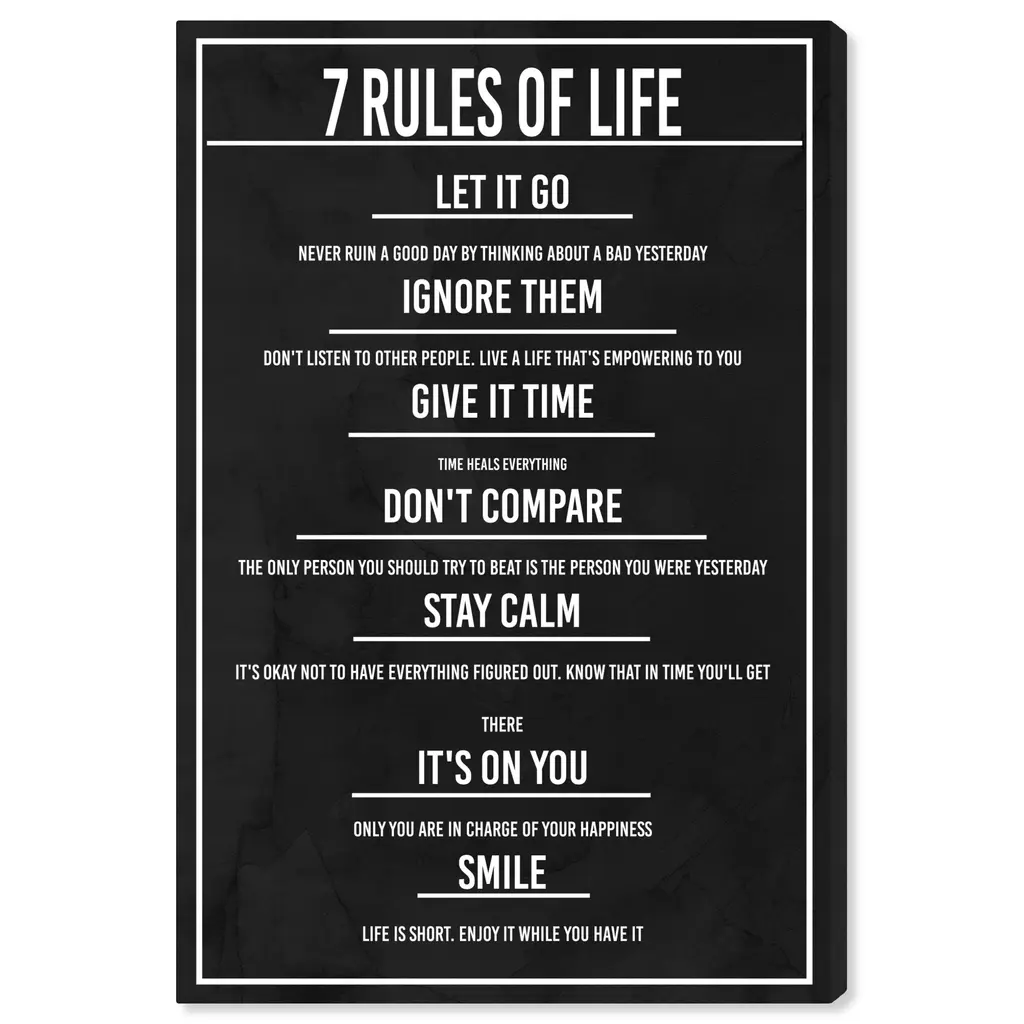 Wynwood Studio Fashion And Glam 7 Rules Of Life Dusk Black And Modern & Contemporary Wall Art Canvas Print - 45 X 30