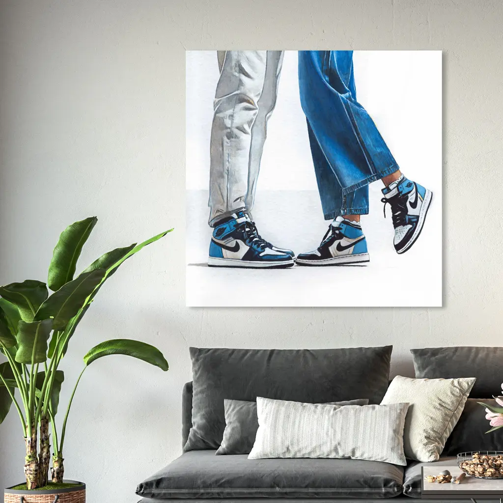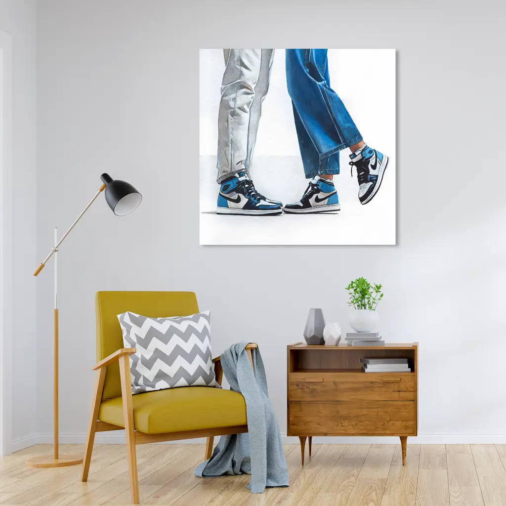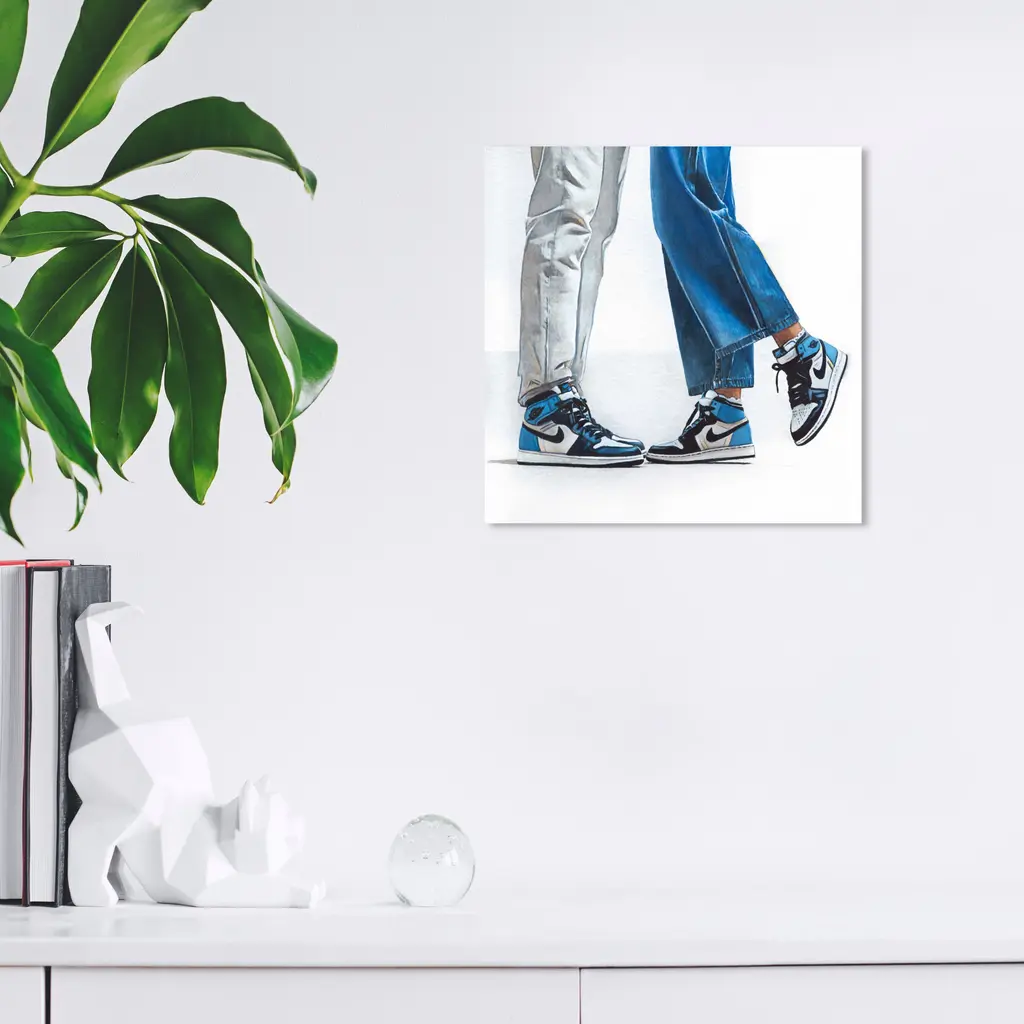 A Cool Couple, is a skillfully made Modern & Contemporary art piece by real artists. With an overarching Blue color, this fine art print by Wynwood Studio Canvas is the perfect finishing touch to your home décor theme. Features: This art piece has a square orientation Fashion design with a Shoes theme to bring you the perfect wall art Sustainable and forest friendly canvas print Professionally hand stretched in a 0.75 inch-thick sustainable wood frame Arrives ready to hang with pre-installed hooks for easy hanging. Nail and hanger also included Printed using ultra-premium and fade resistant inks to guarantee high definition and vivid colors Available in several size options Proudly made in the USA