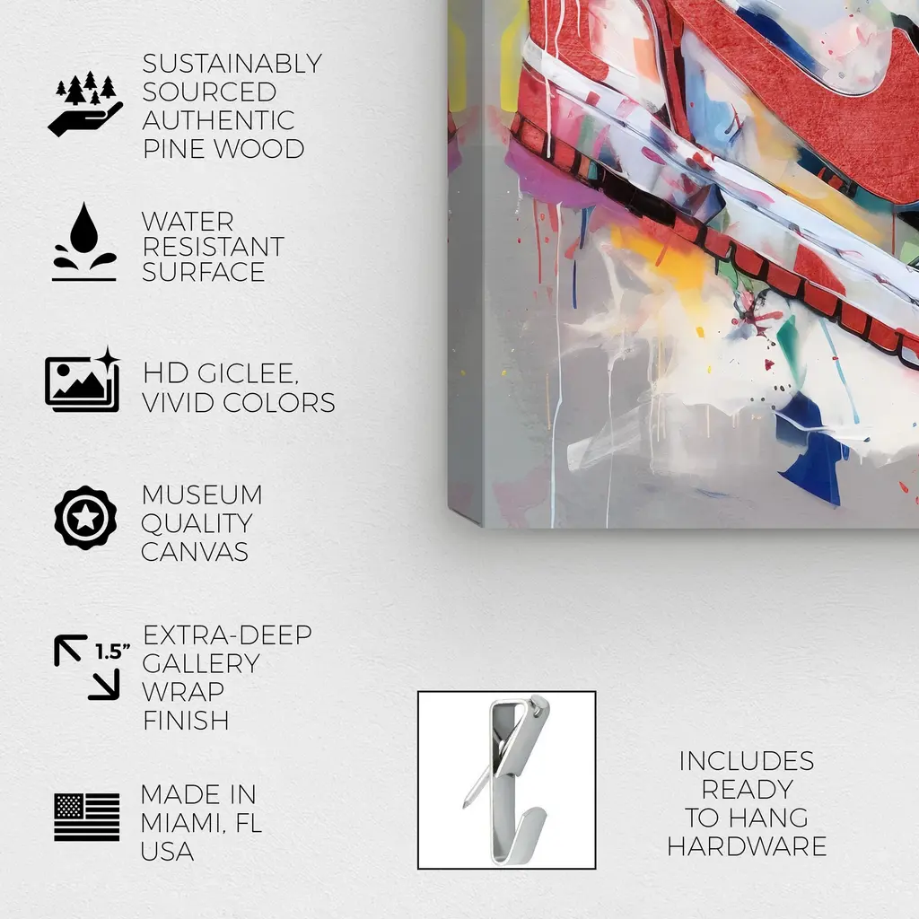 Artsy Sneaker, is a skillfully made Modern & Contemporary art piece by real artists. With an overarching Red color, this fine art print by Oliver Gal is the perfect finishing touch to your home décor theme. Features: This art piece has a square orientation Fashion design with a Shoes theme to bring you the perfect wall art Sustainable and forest friendly canvas print Professionally hand stretched in a 0.75 inch-thick sustainable wood frame Arrives ready to hang with pre-installed hooks for easy hanging. Nail and hanger also included Printed using ultra-premium and fade resistant inks to guarantee high definition and vivid colors Available in several size options Proudly made in the USA