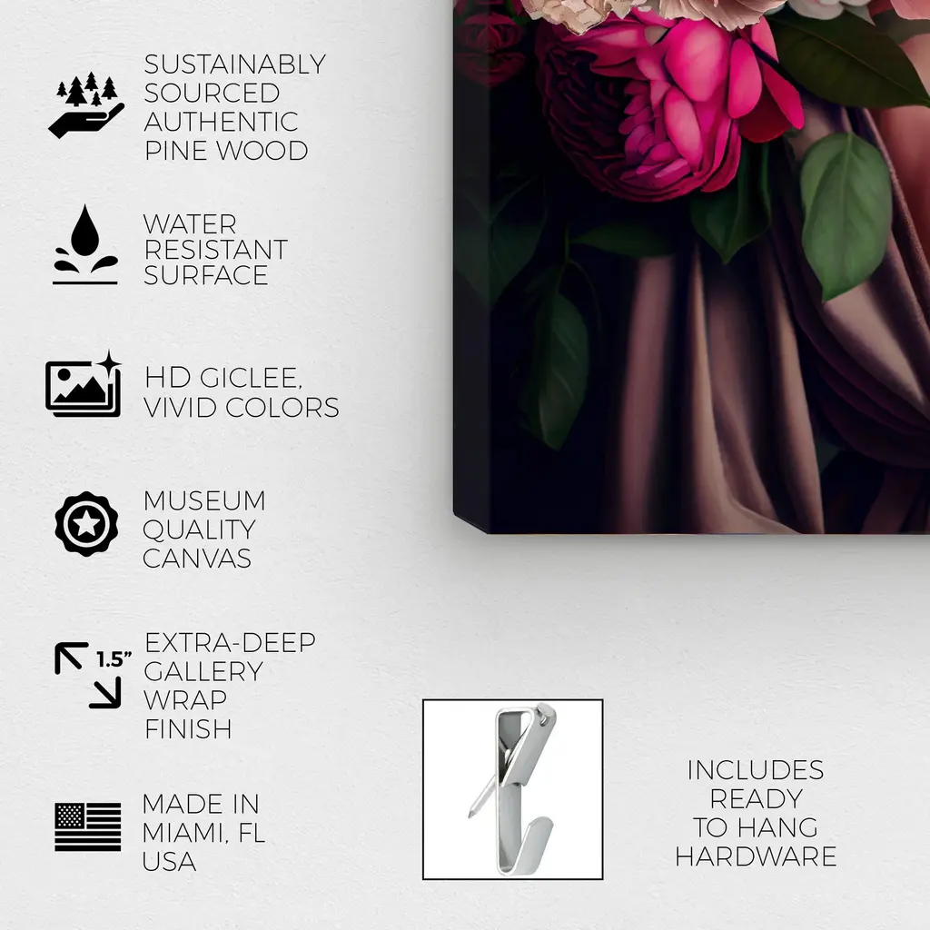 Carmina, is a skillfully made Traditional art piece by real artists. With an overarching Pink color, this fine art print by Oliver Gal is the perfect finishing touch to your home décor theme. Features: This art piece has a vertical orientation Portrait design with a Portraits theme to bring you the perfect wall art Sustainable and forest friendly canvas print Professionally hand stretched in a 0.75 inch-thick sustainable wood frame Arrives ready to hang with pre-installed hooks for easy hanging. Nail and hanger also included Printed using ultra-premium and fade resistant inks to guarantee high definition and vivid colors Available in several size options Proudly made in the USA