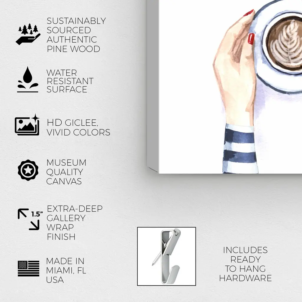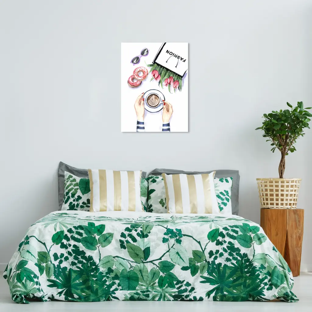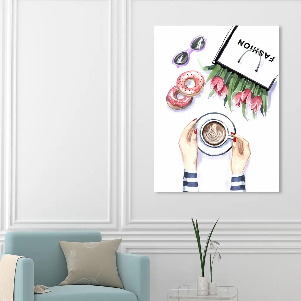 Coffee and donut time, is a skillfully made Modern & Contemporary art piece by real artists. With an overarching Pink color, this fine art print by Wynwood Studio Canvas is the perfect finishing touch to your home décor theme. Features: This art piece has a vertical orientation Fashion design with a Accessories theme to bring you the perfect wall art Sustainable and forest friendly canvas print Professionally hand stretched in a 0.75 inch-thick sustainable wood frame Arrives ready to hang with pre-installed hooks for easy hanging. Nail and hanger also included Printed using ultra-premium and fade resistant inks to guarantee high definition and vivid colors Available in several size options Proudly made in the USA