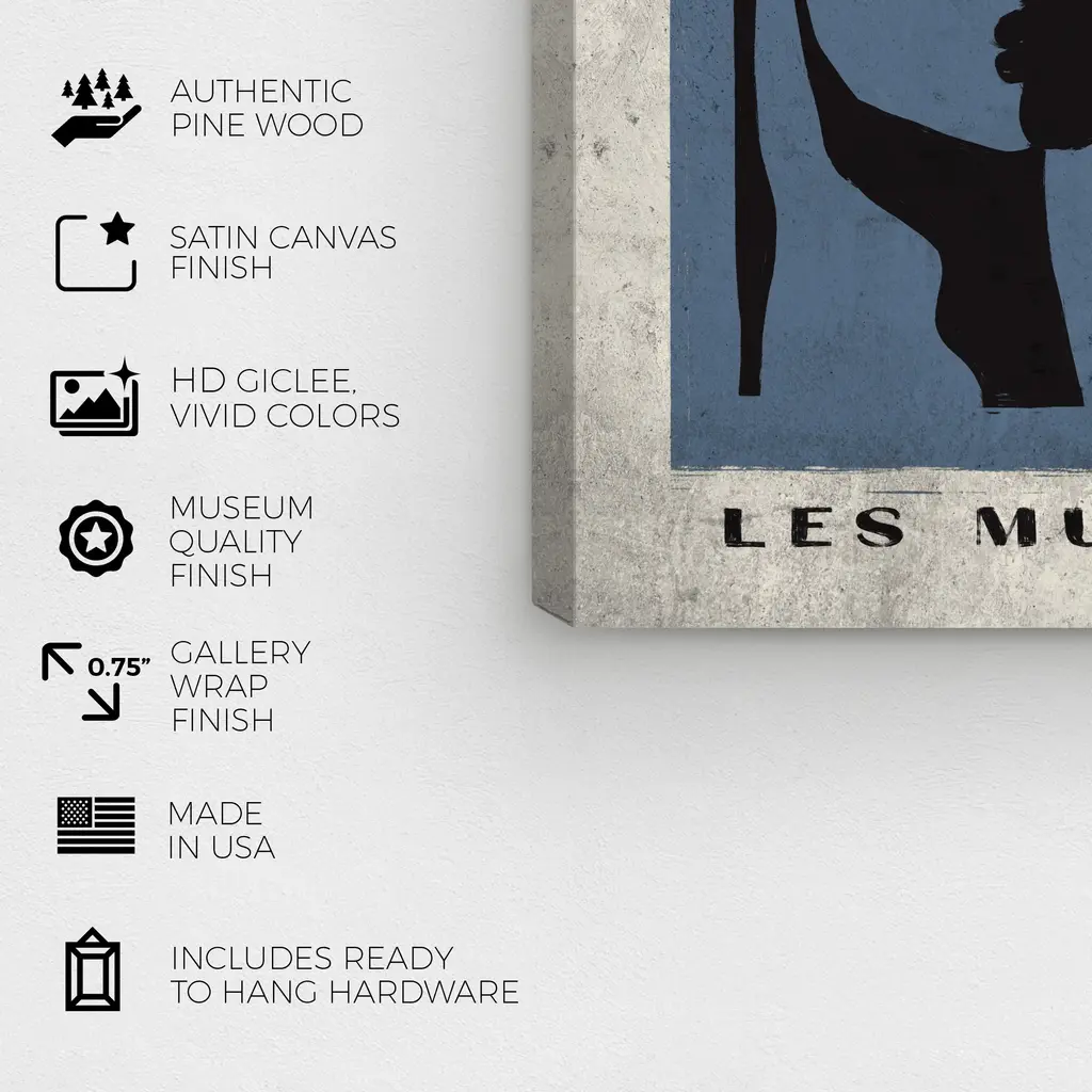 Les Muses Poster, is a skillfully made Modern & Contemporary art piece by real artists. With an overarching Blue color, this fine art print by Wynwood Studio Canvas is the perfect finishing touch to your home décor theme. Features: This art piece has a vertical orientation Portrait design with a Portraits theme to bring you the perfect wall art Sustainable and forest friendly canvas print Professionally hand stretched in a 0.75 inch-thick sustainable wood frame Arrives ready to hang with pre-installed hooks for easy hanging. Nail and hanger also included Printed using ultra-premium and fade resistant inks to guarantee high definition and vivid colors Available in several size options Proudly made in the USA