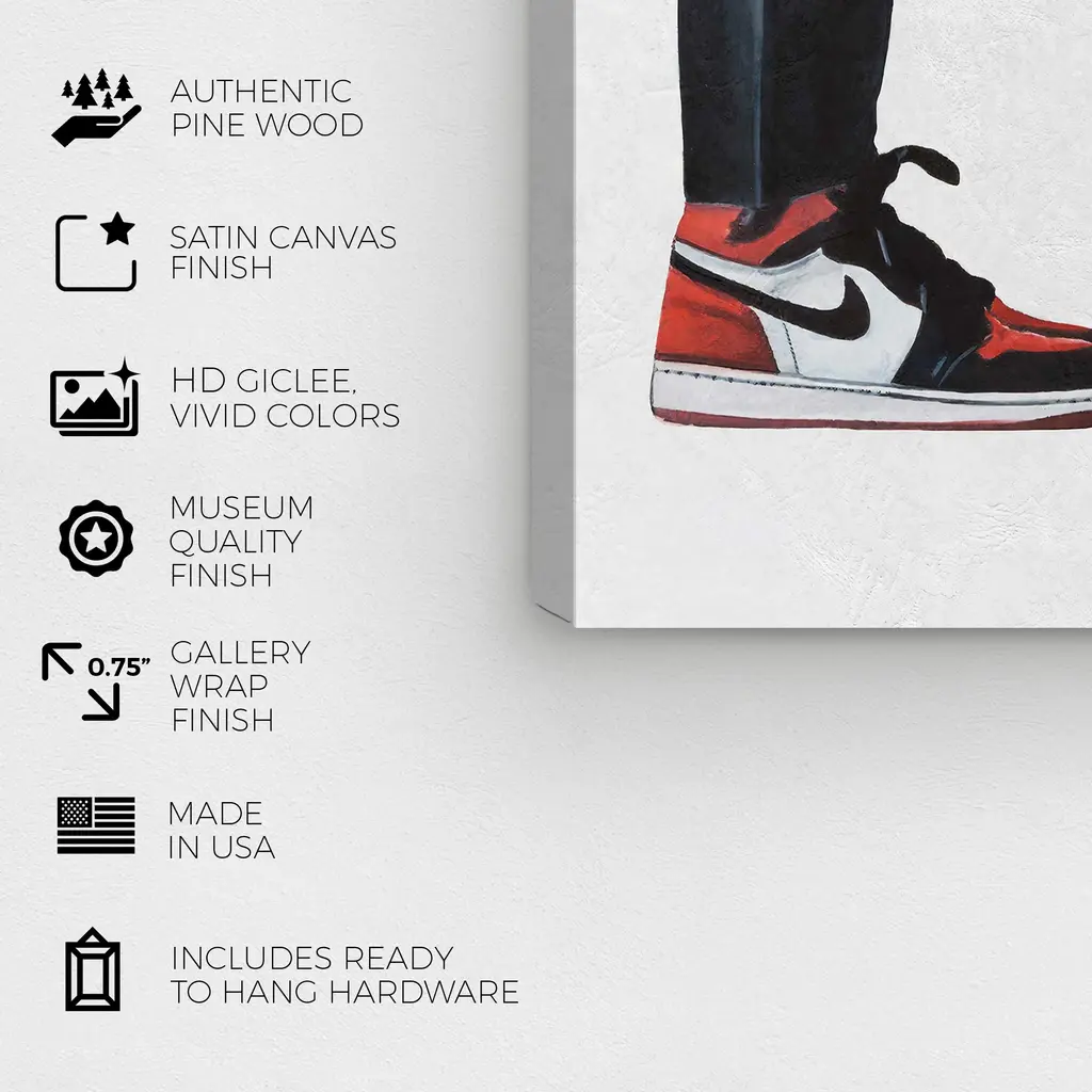 Sneaker Love, is a skillfully made Farmhouse art piece by real artists. With an overarching Black color, this fine art print by Oliver Gal is the perfect finishing touch to your home décor theme. Features: This art piece has a vertical orientation Fashion design with a Shoes theme to bring you the perfect wall art Sustainable and forest friendly canvas print Professionally hand stretched in a 0.75 inch-thick sustainable wood frame Arrives ready to hang with pre-installed hooks for easy hanging. Nail and hanger also included Printed using ultra-premium and fade resistant inks to guarantee high definition and vivid colors Available in several size options Proudly made in the USA