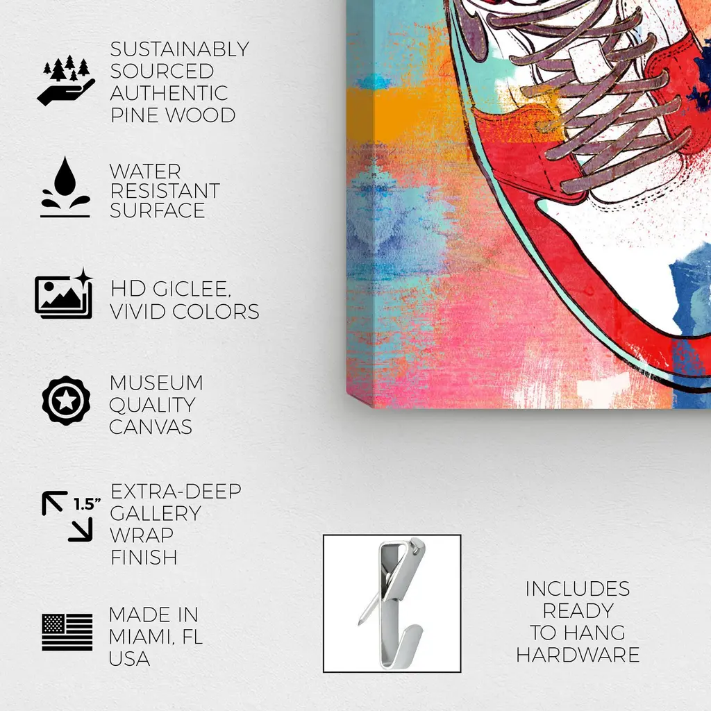 Sneaker Style II, is a skillfully made Modern & Contemporary art piece by real artists. With an overarching Red color, this fine art print by Wynwood Studio Canvas is the perfect finishing touch to your home décor theme. Features: This art piece has a square orientation Fashion design with a Shoes theme to bring you the perfect wall art Sustainable and forest friendly canvas print Professionally hand stretched in a 0.75 inch-thick sustainable wood frame Arrives ready to hang with pre-installed hooks for easy hanging. Nail and hanger also included Printed using ultra-premium and fade resistant inks to guarantee high definition and vivid colors Available in several size options Proudly made in the USA