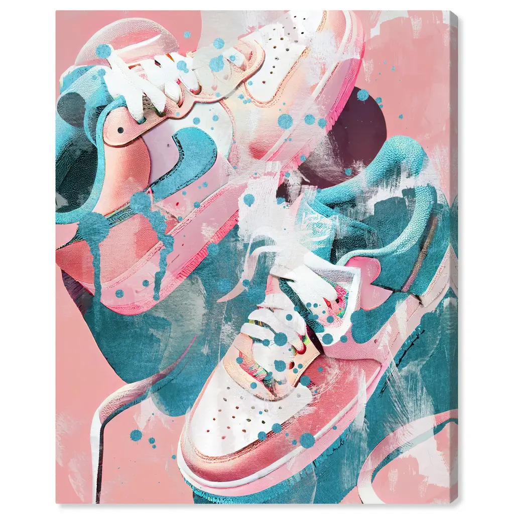 Wynwood Studio Fashion And Glam Summer Sneakers Pink And Turquoise Modern & Contemporary Wall Art Canvas Print - 36 X 30
