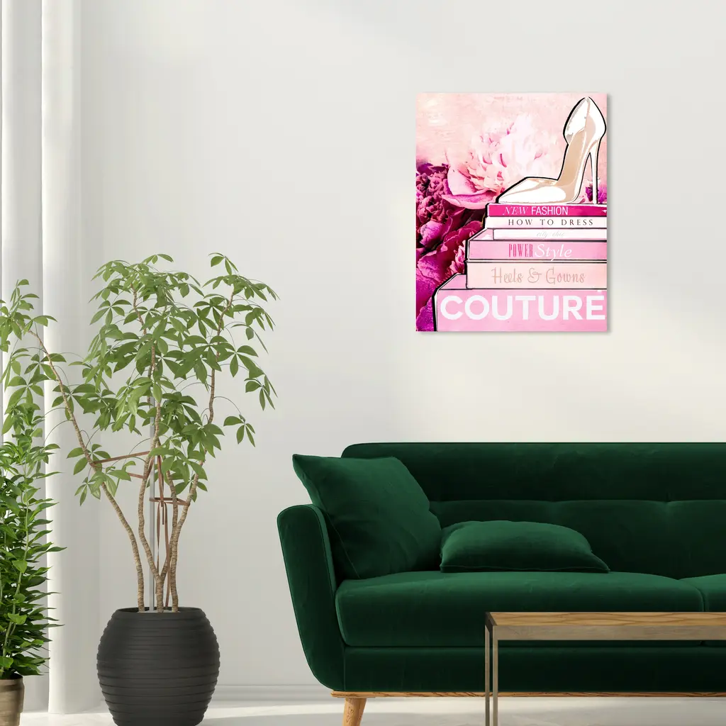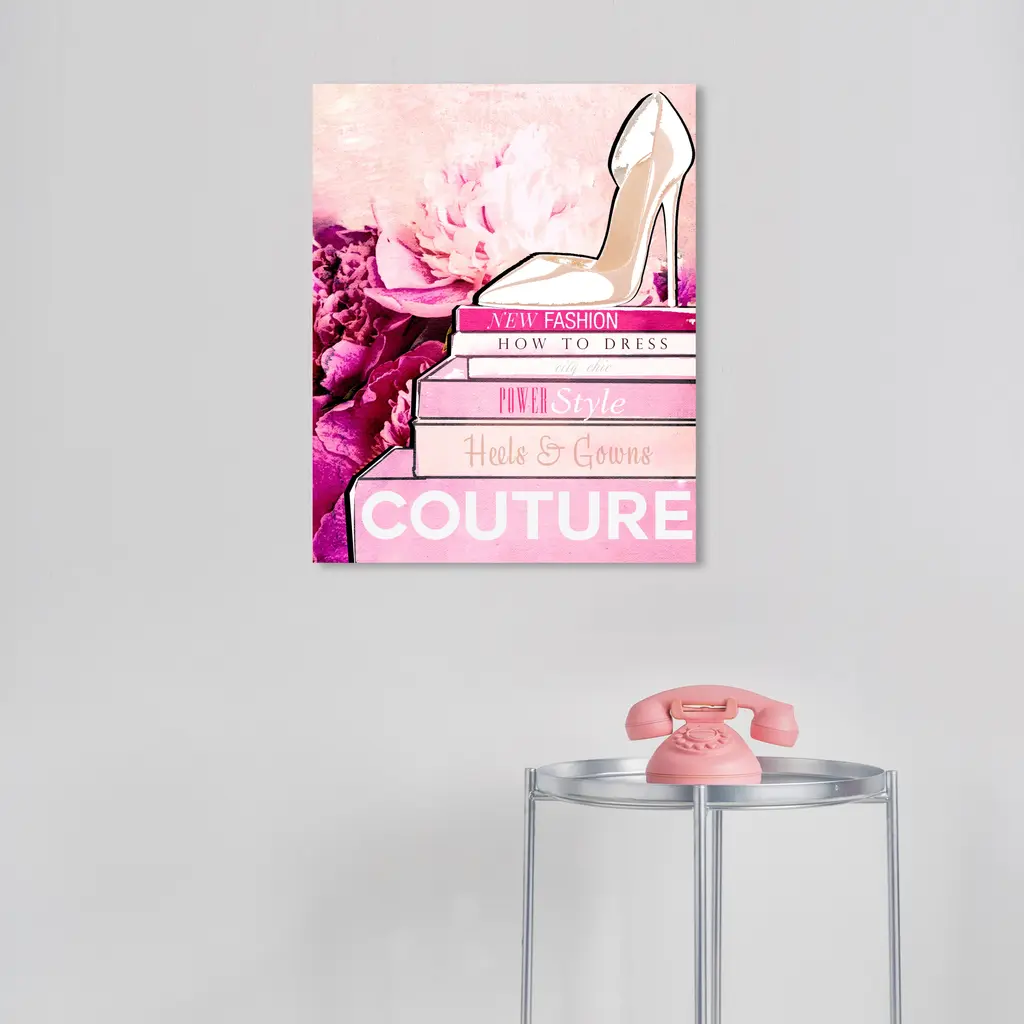 Whats On My Mind Couture, is a skillfully made Glam art piece by real artists. With an overarching Pink color, this fine art print by Oliver Gal is the perfect finishing touch to your home décor theme. Features: This art piece has a vertical orientation Fashion design with a Shoes theme to bring you the perfect wall art Sustainable and forest friendly canvas print Professionally hand stretched in a 0.75 inch-thick sustainable wood frame Arrives ready to hang with pre-installed hooks for easy hanging. Nail and hanger also included Printed using ultra-premium and fade resistant inks to guarantee high definition and vivid colors Available in several size options Proudly made in the USA