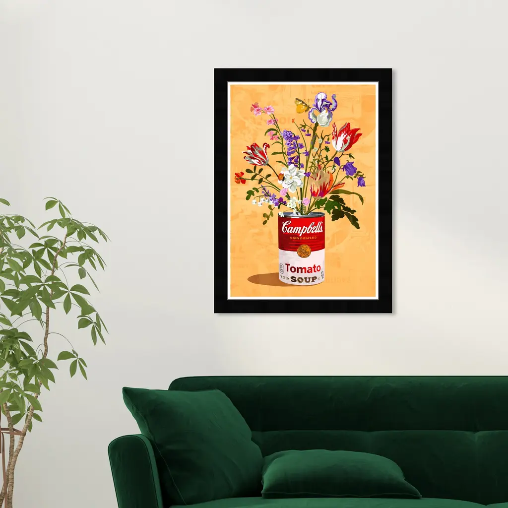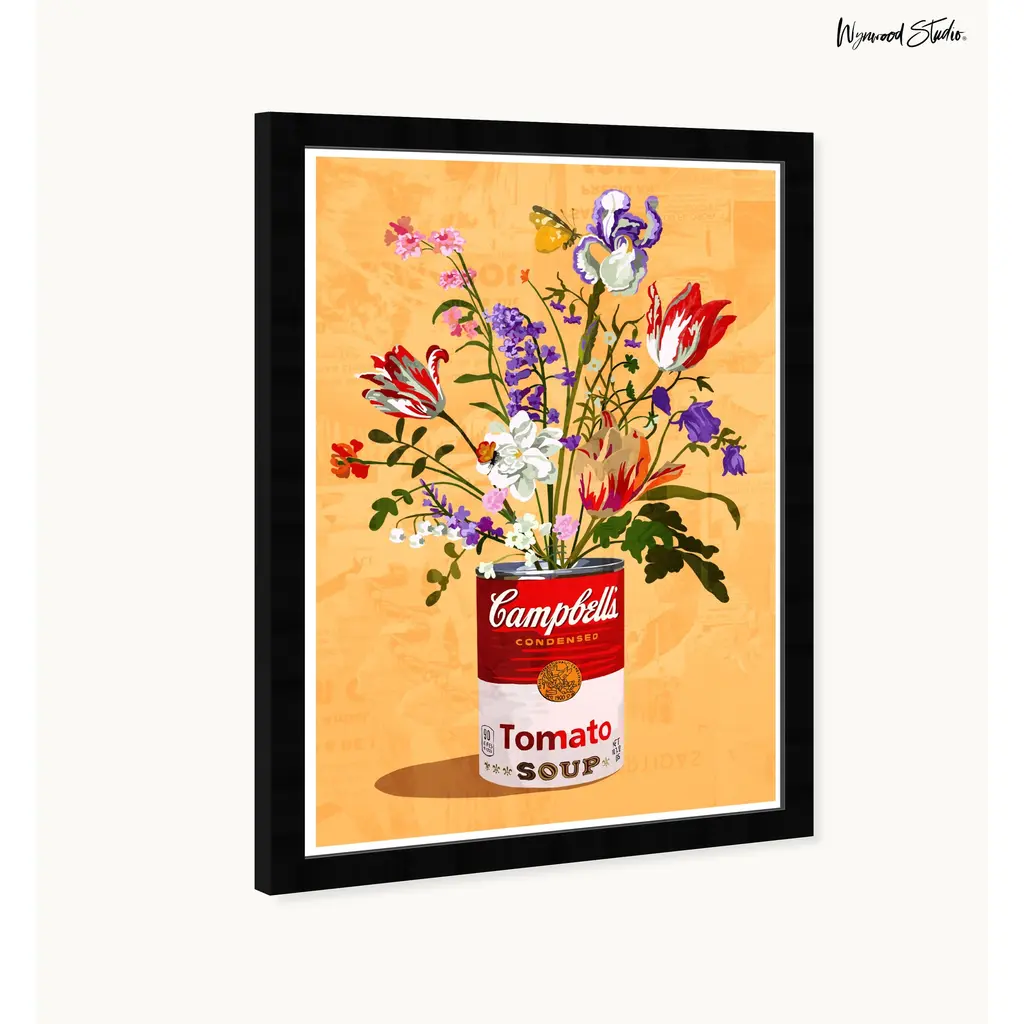 Wynwood Studio Floral Soup Can Framed Trendy Retro Kitchen And Living Room Art Prints - 15 X 21 - Black