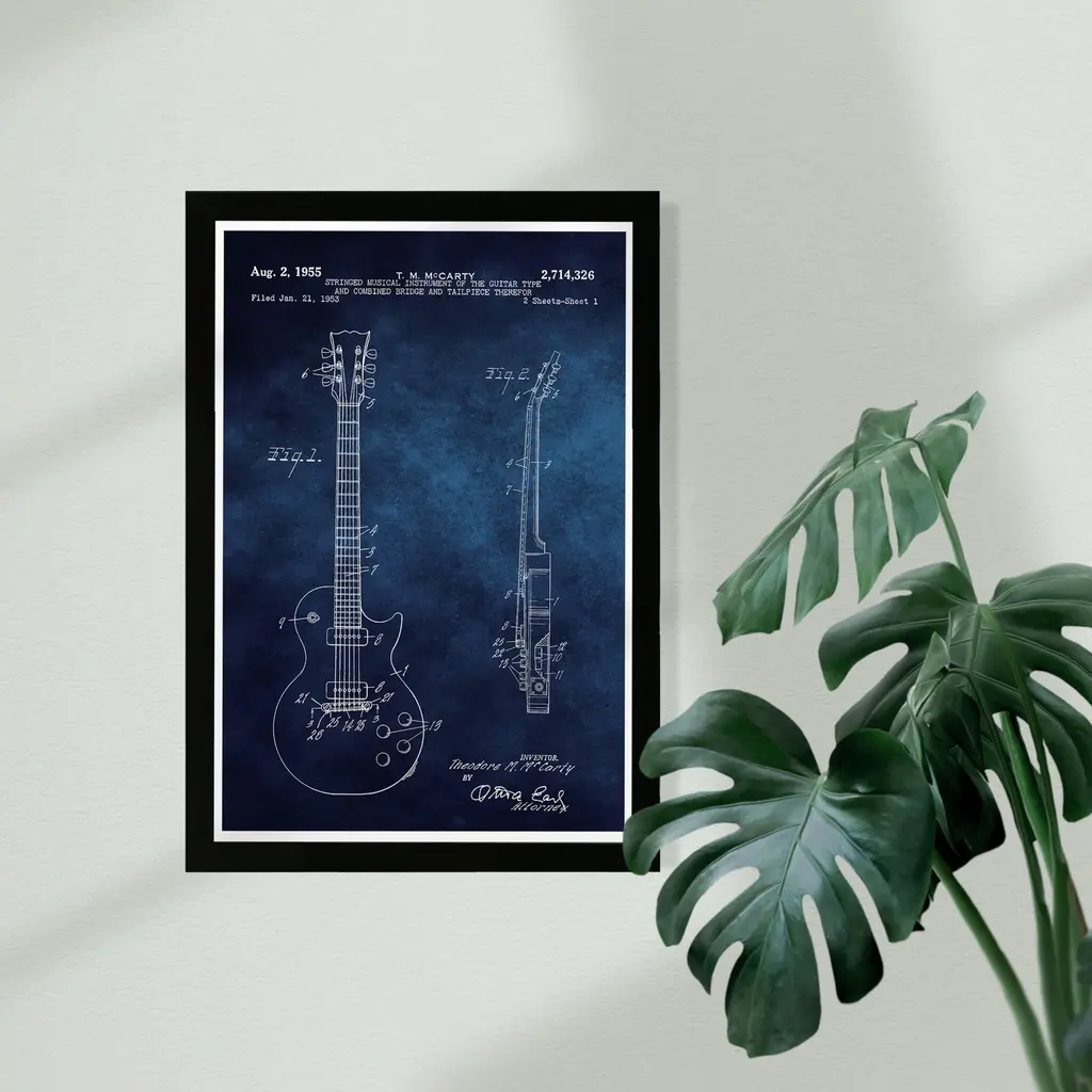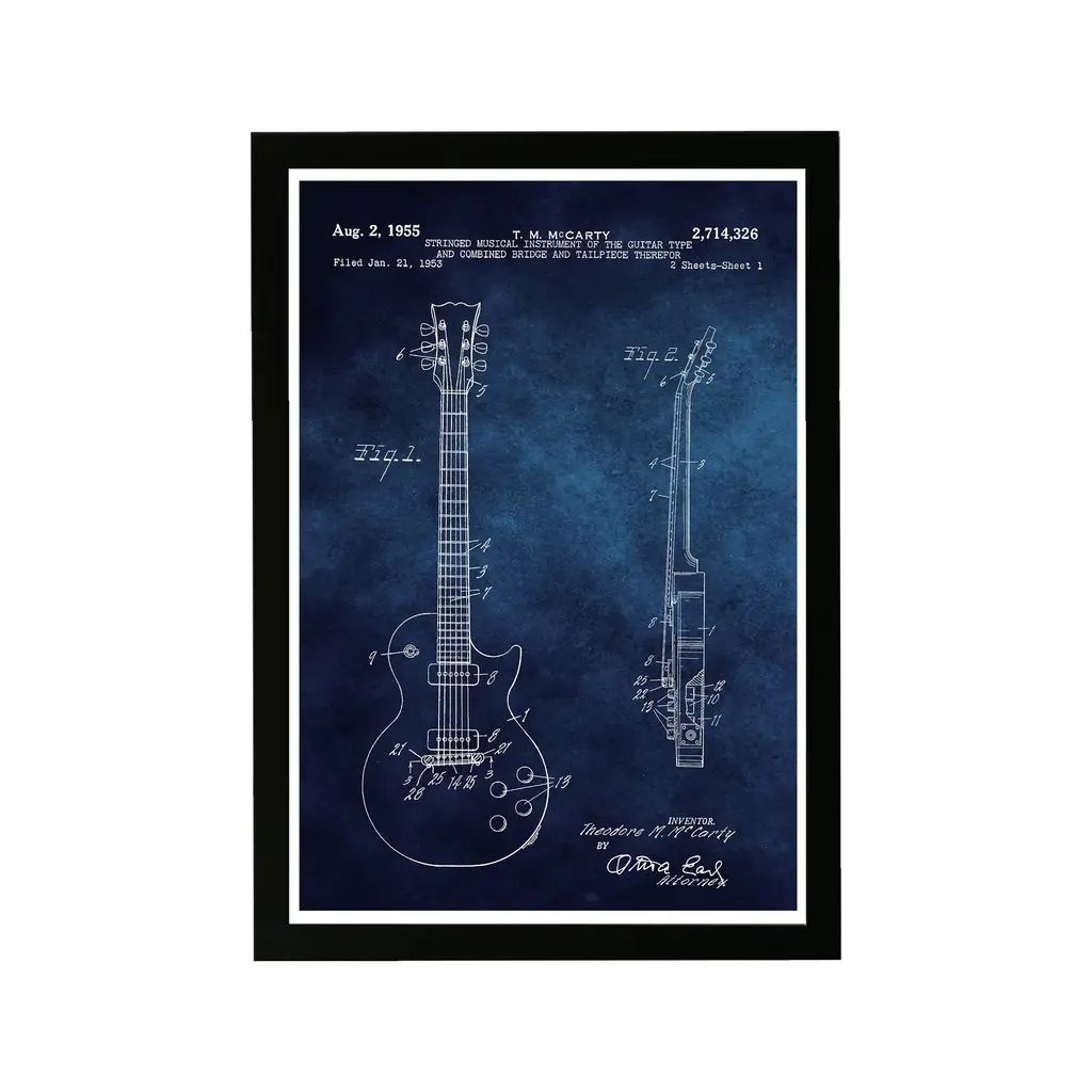 Gibson Les Paul Guitar 1955 Blue Chalkboard, is a skillfully made Industrial art piece by real artists. With an overarching Blue color, this framed wall art print by Wynwood Studio is the perfect finishing touch to your home decor theme.Features: This art piece has a horizontal orientation Music design with a Music Instruments theme to bring you the perfect wall art Sustainable and forest friendly Professionally hand framed in a 1.2" premium black frame. Art print is 13 x 19 inches. Printed using ultra-premium and fade resistant inks to guarantee high definition and vivid colors Proudly made in the USA
