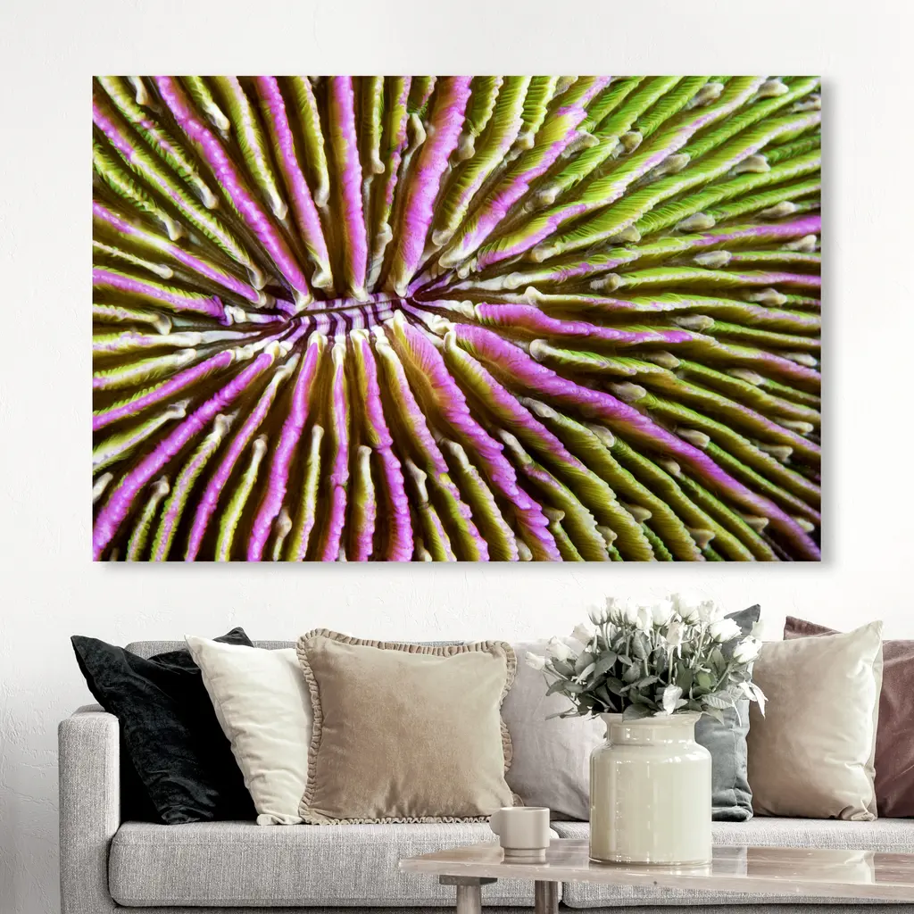 David Fleetham - Mushroom Coral II, is a skillfully made Bohemian & Eclectic art piece by real artists. With an overarching Pink color, this fine art print by Oliver Gal is the perfect finishing touch to your home décor theme. Features: This art piece has a horizontal orientation Beach design with a Marine Life theme to bring you the perfect wall art Sustainable and forest friendly canvas print Professionally hand stretched in a 0.75 inch-thick sustainable wood frame Arrives ready to hang with pre-installed hooks for easy hanging. Nail and hanger also included Printed using ultra-premium and fade resistant inks to guarantee high definition and vivid colors Available in several size options Proudly made in the USA