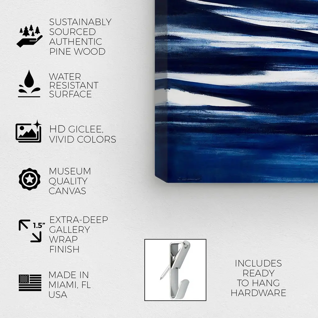 Ripples on the Surface, is a skillfully made Nautical & Coastal art piece by real artists. With an overarching Blue color, this fine art print by Oliver Gal is the perfect finishing touch to your home décor theme. Features: This art piece has a horizontal orientation Beach design with a Coastal theme to bring you the perfect wall art Sustainable and forest friendly canvas print Professionally hand stretched in a 0.75 inch-thick sustainable wood frame Arrives ready to hang with pre-installed hooks for easy hanging. Nail and hanger also included Printed using ultra-premium and fade resistant inks to guarantee high definition and vivid colors Available in several size options Proudly made in the USA