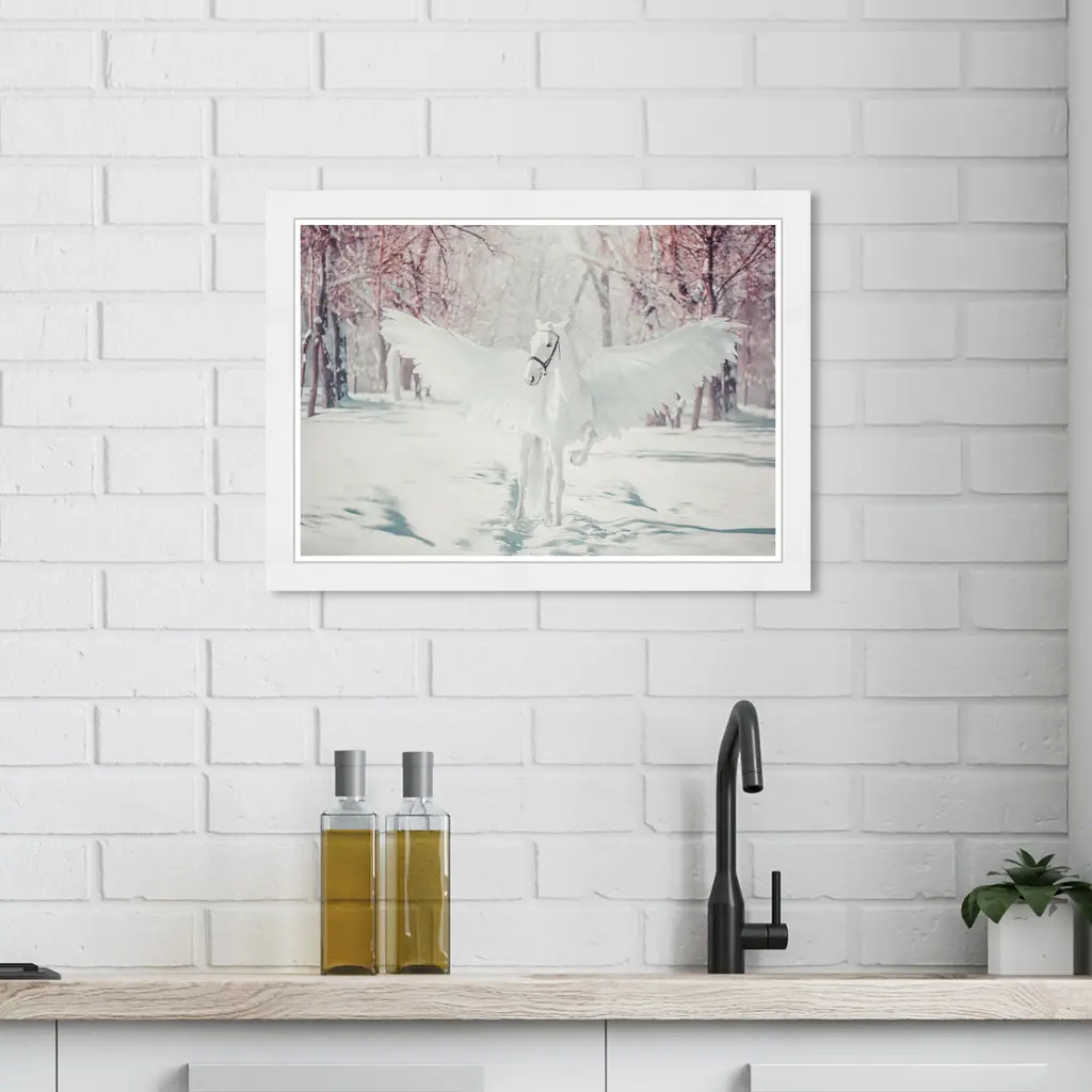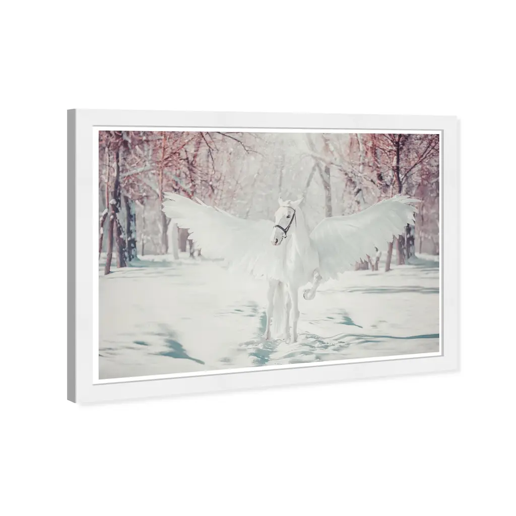 Winged Beautiful Horse, is a skillfully made Modern & Contemporary art piece by real artists. With an overarching White color, this fine art print by Wynwood Studio Prints is the perfect finishing touch to your home décor theme. Features: This art piece has a horizontal orientation People design with a Fantasy Creatures theme to bring you the perfect wall art Sustainable and forest friendly framed print Professionally hand framed in black picture frame Arrives ready to hang with pre-installed hooks for easy hanging. Nail and hanger also included Printed using ultra-premium and fade resistant inks to guarantee high definition and vivid colors Available in several size options Proudly made in the USA