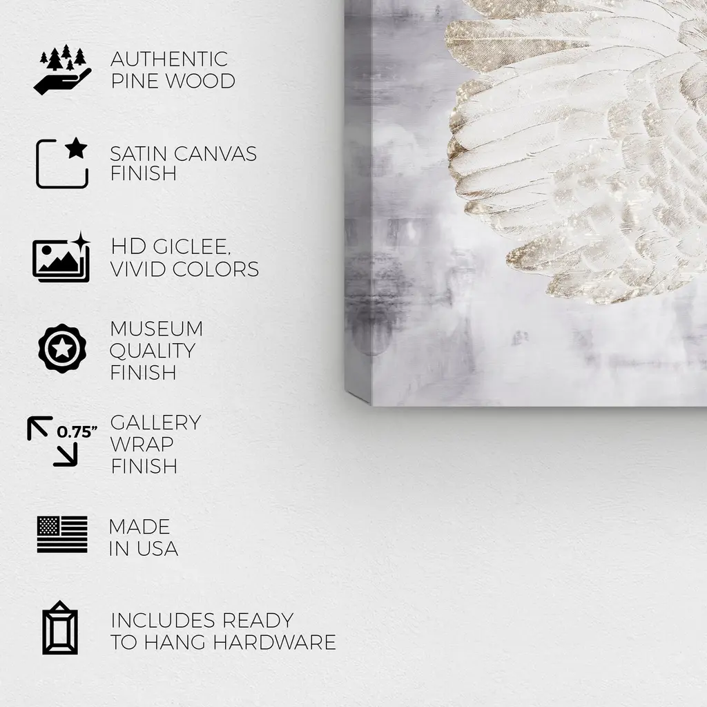My Amethyst Angel Wings, is a skillfully made Glam art piece by real artists. With an overarching Gold color, this fine art print by Wynwood Studio Prints is the perfect finishing touch to your home décor theme. Features: This art piece has a square orientation Fashion design with a Wings theme to bring you the perfect wall art Sustainable and forest friendly canvas print Professionally hand stretched in a 0.75 inch-thick sustainable wood frame Arrives ready to hang with pre-installed hooks for easy hanging. Nail and hanger also included Printed using ultra-premium and fade resistant inks to guarantee high definition and vivid colors Available in several size options Proudly made in the USA