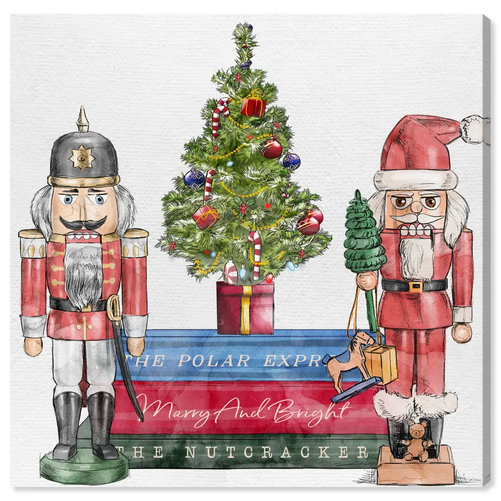 Wynwood Studio Prints Holiday Christmas Books And Holiday Cheer Red And Red Modern & Contemporary Wall Art Canvas Print - 20 X 20