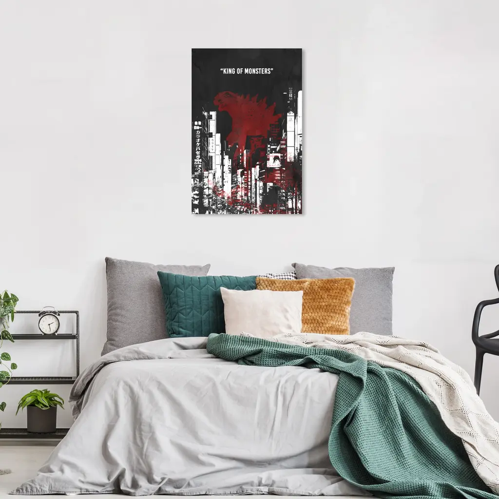 King of Monsters, is a skillfully made Global art piece by real artists. With an overarching Red color, this fine art print by Wynwood Studio Prints is the perfect finishing touch to your home décor theme. Features: This art piece has a vertical orientation Movies and Television design with a Science Fiction theme to bring you the perfect wall art Sustainable and forest friendly canvas print Professionally hand stretched in a 0.75 inch-thick sustainable wood frame Arrives ready to hang with pre-installed hooks for easy hanging. Nail and hanger also included Printed using ultra-premium and fade resistant inks to guarantee high definition and vivid colors Available in several size options Proudly made in the USA