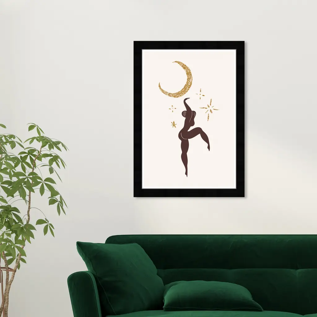 Dancing in the moonlight , is a skillfully made Bohemian & Eclectic art piece by real artists. With an overarching Gold color, this fine art print by Wynwood Studio Prints is the perfect finishing touch to your home décor theme. Features: This art piece has a vertical orientation Music design with a Dance theme to bring you the perfect wall art Sustainable and forest friendly framed print Professionally hand framed in black picture frame Arrives ready to hang with pre-installed hooks for easy hanging. Nail and hanger also included Printed using ultra-premium and fade resistant inks to guarantee high definition and vivid colors Available in several size options Proudly made in the USA