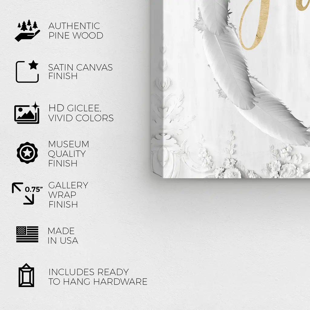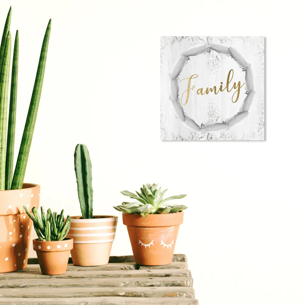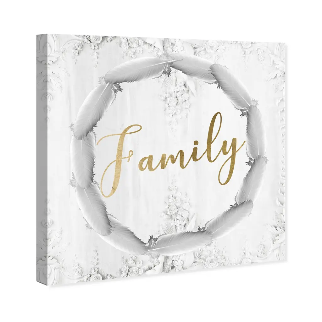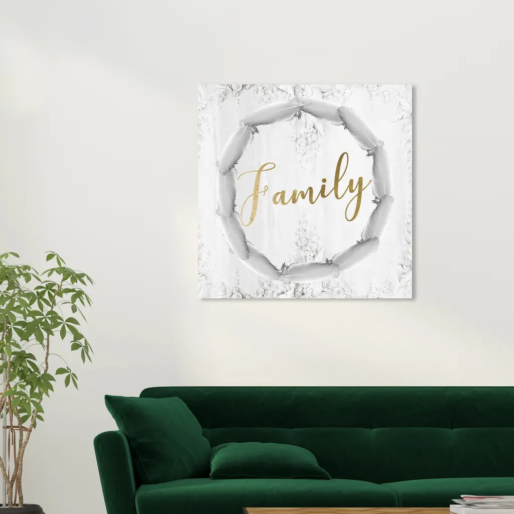 Express throughout your walls how much you love your family with this loving wall art piece. Everything you need to say but with a modern and chic style. This quote wall art can be the center piece of your living room, dining room, bedroom or kitchenFamily Gold and Feathers, is a skillfully made Modern & Contemporary art piece by real artists. With an overarching Gold color, this fine art print by Wynwood Studio Prints is the perfect finishing touch to your home décor theme. Features: This art piece has a square orientation Typography and Symbols design with a Family Quotes and Sayings theme to bring you the perfect wall art Sustainable and forest friendly canvas print Professionally hand stretched in a 0.75 inch-thick sustainable wood frame Arrives ready to hang with pre-installed hooks for easy hanging. Nail and hanger also included Printed using ultra-premium and fade resistant inks to guarantee high definition and vivid colors Available in several size options Proudly made in the USA