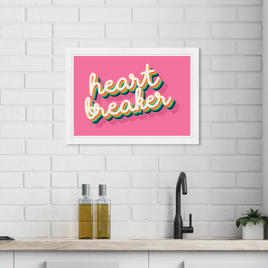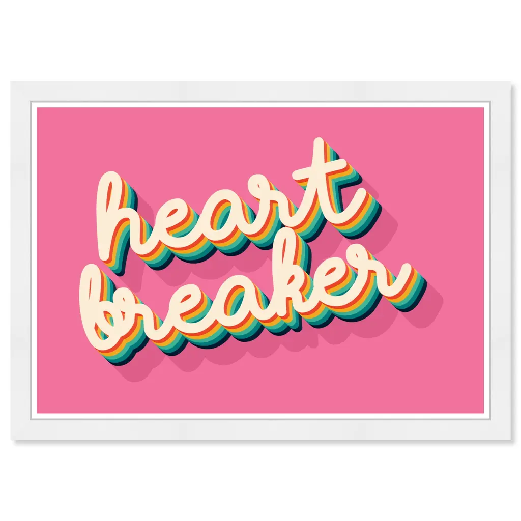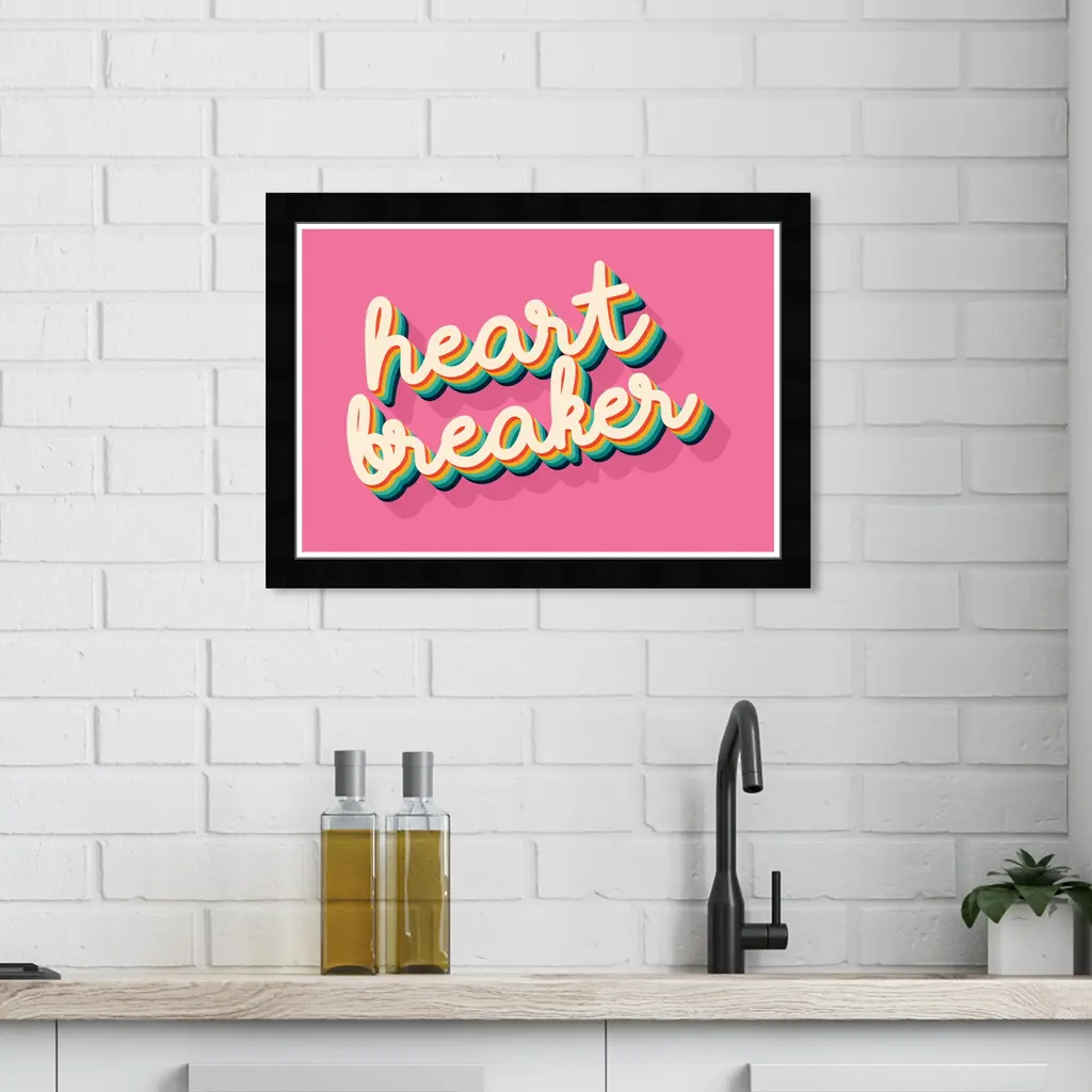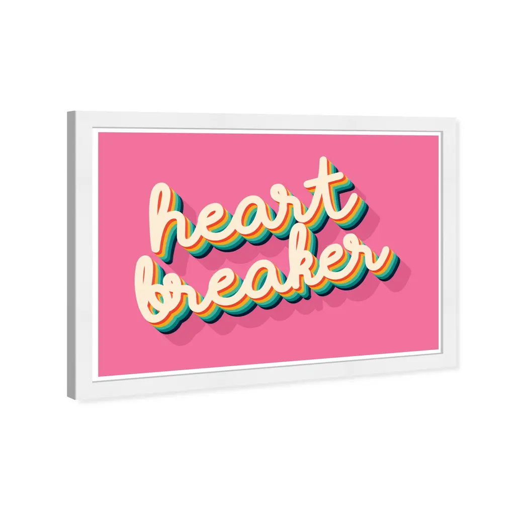 Heart Breaker Pink, is a skillfully made Modern & Contemporary art piece by real artists. With an overarching Pink color, this fine art print by Wynwood Studio Prints is the perfect finishing touch to your home décor theme. Features: This art piece has a horizontal orientation Typography and Symbols design with a Love Quotes and Sayings theme to bring you the perfect wall art Sustainable and forest friendly framed print Professionally hand framed in black picture frame Arrives ready to hang with pre-installed hooks for easy hanging. Nail and hanger also included Printed using ultra-premium and fade resistant inks to guarantee high definition and vivid colors Available in several size options Proudly made in the USA