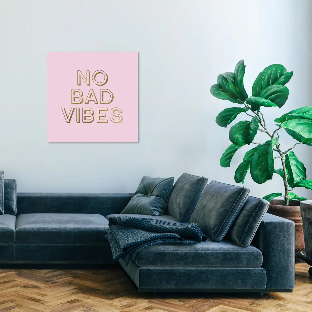 Wynwood Studio Prints Typography And Quotes No Bad Vibes Pink And Pastel Pink Modern & Contemporary Wall Art Canvas Print - 12 X 12