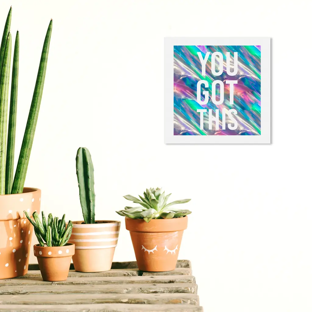 Build your decor from the ground up with this inspirational and motivational quotes wall art piece. Let your walls speak words of wisdom to everyone who passes through. These sophisticated compositions will give your home or workspace the sense of inspiration it was missingYou Got This Holo, is a skillfully made Modern & Contemporary art piece by real artists. With an overarching Pink color, this fine art print by Wynwood Studio Prints is the perfect finishing touch to your home décor theme. Features: This art piece has a square orientation Typography and Symbols design with a Inspirational Quotes and Sayings theme to bring you the perfect wall art Sustainable and forest friendly canvas print Professionally hand stretched in a 0.75 inch-thick sustainable wood frame Arrives ready to hang with pre-installed hooks for easy hanging. Nail and hanger also included Printed using ultra-premium and fade resistant inks to guarantee high definition and vivid colors Available in several size options Proudly made in the USA