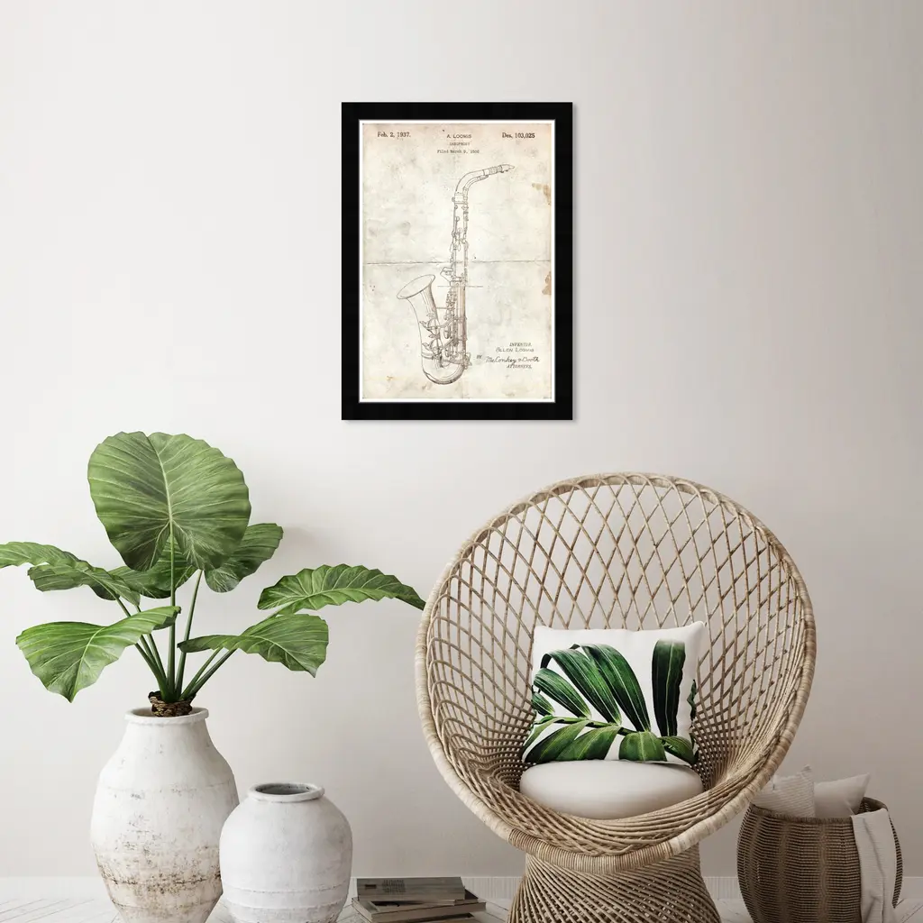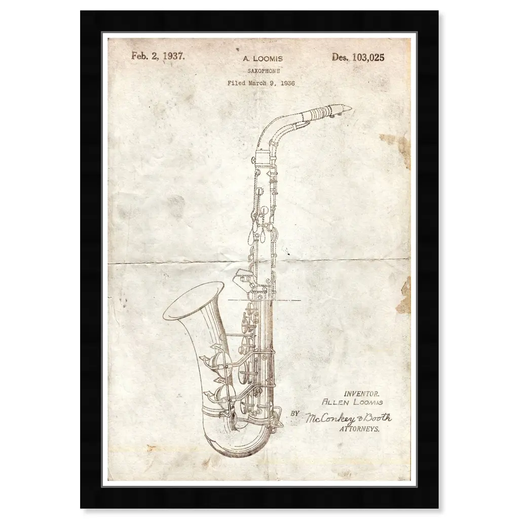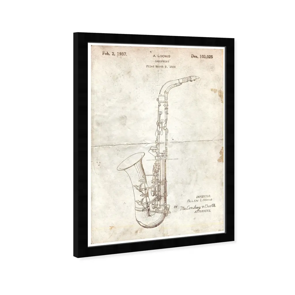 Saxophone 1937 Parchment, is a skillfully made Modern & Contemporary art piece by real artists. With an overarching White color, this fine art framed print by Wynwood Studio. is the perfect finishing touch to your home decor theme.Features: This art piece has a vertical orientation Music design with a Music Instruments theme to bring you the perfect wall art Sustainable and forest friendly Professionally hand stretched in a 1.5 inch-thick sustainable wood frame Arrives ready to hang with pre-installed hooks for easy hanging. Nail and hanger also included Printed using ultra-premium and fade resistant inks to guarantee high definition and vivid colors Available in several size options Proudly made in the USA