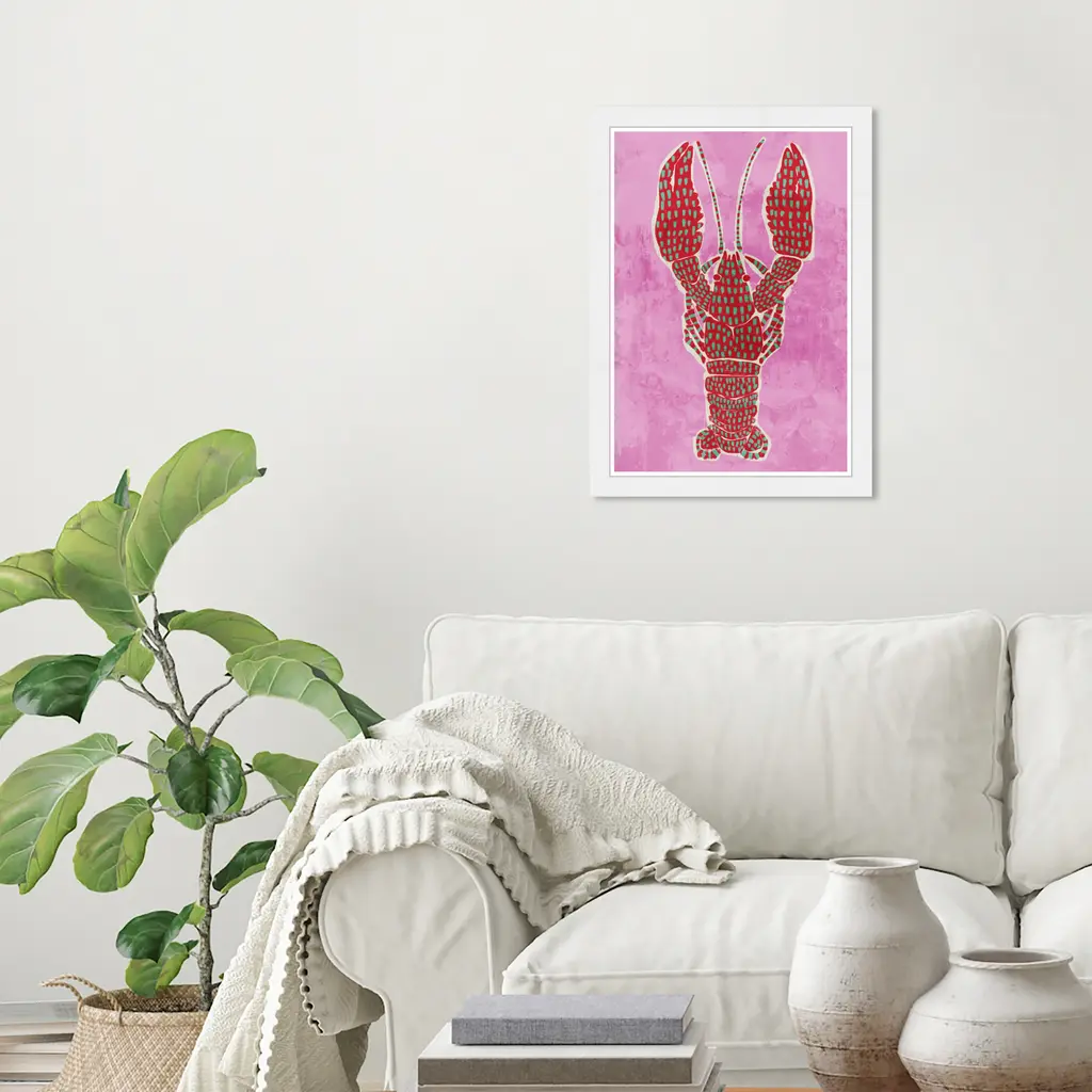 Wynwood Studio Spotted Lobster Framed Trendy Retro Kitchen And Living Room Art Prints - 15 X 21 - White