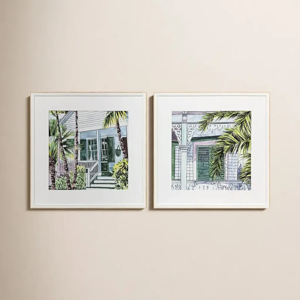 Wynwood Studio Watercolor Palm Front Framed Beachfront Coastal Prints - 15 X 21 - White
