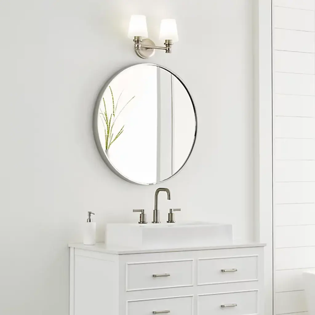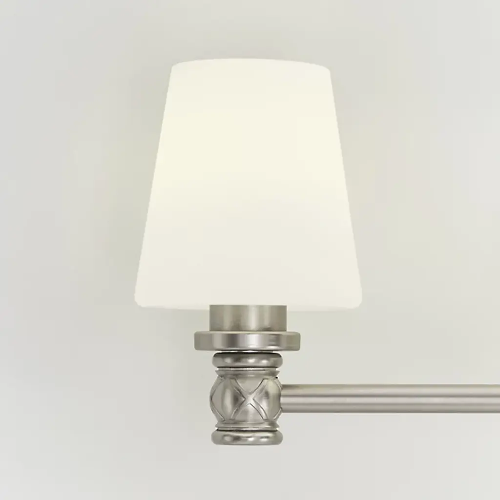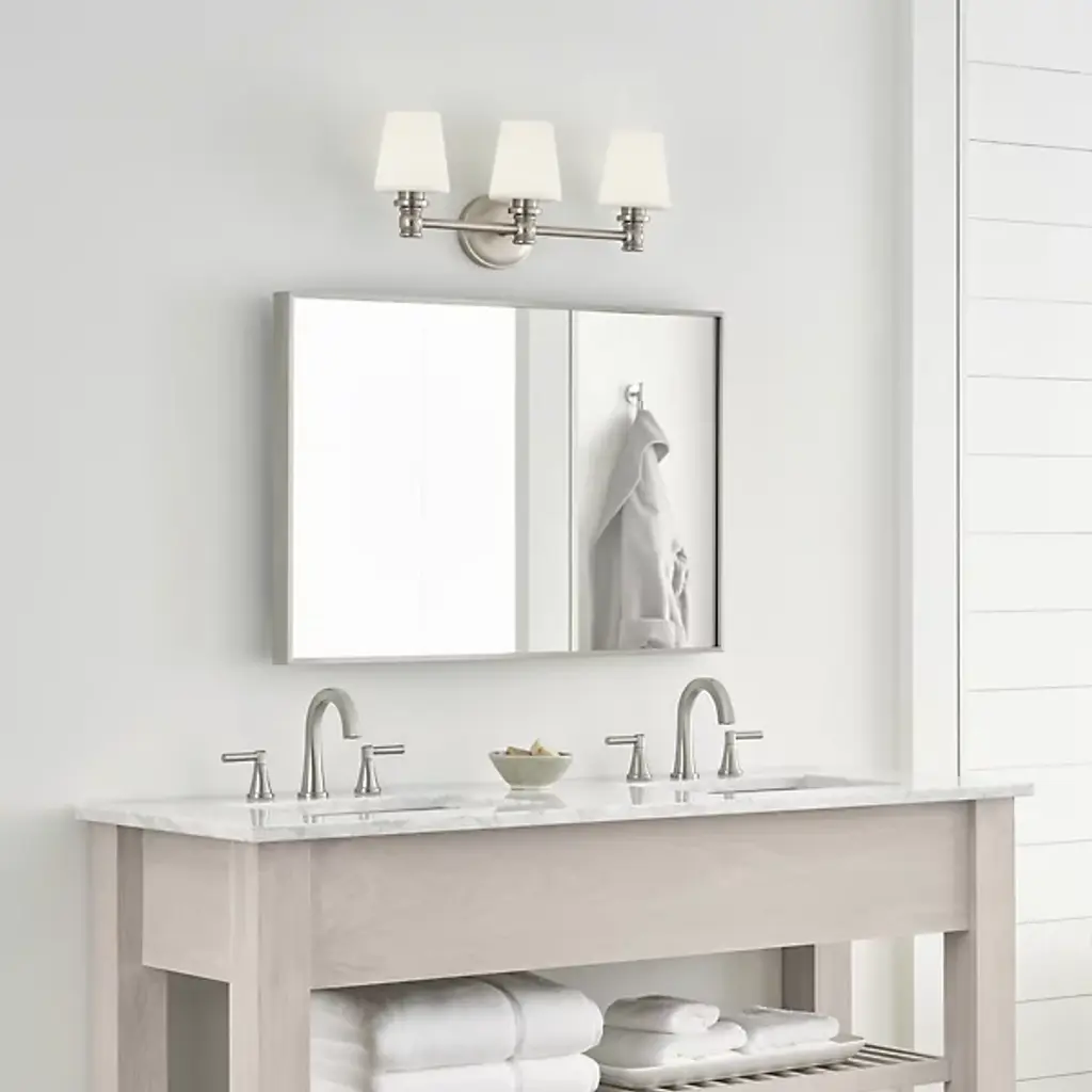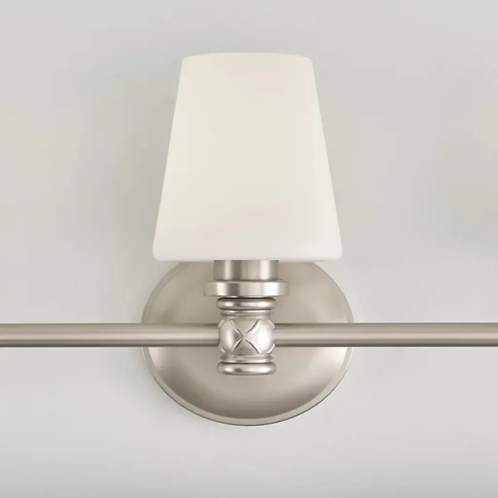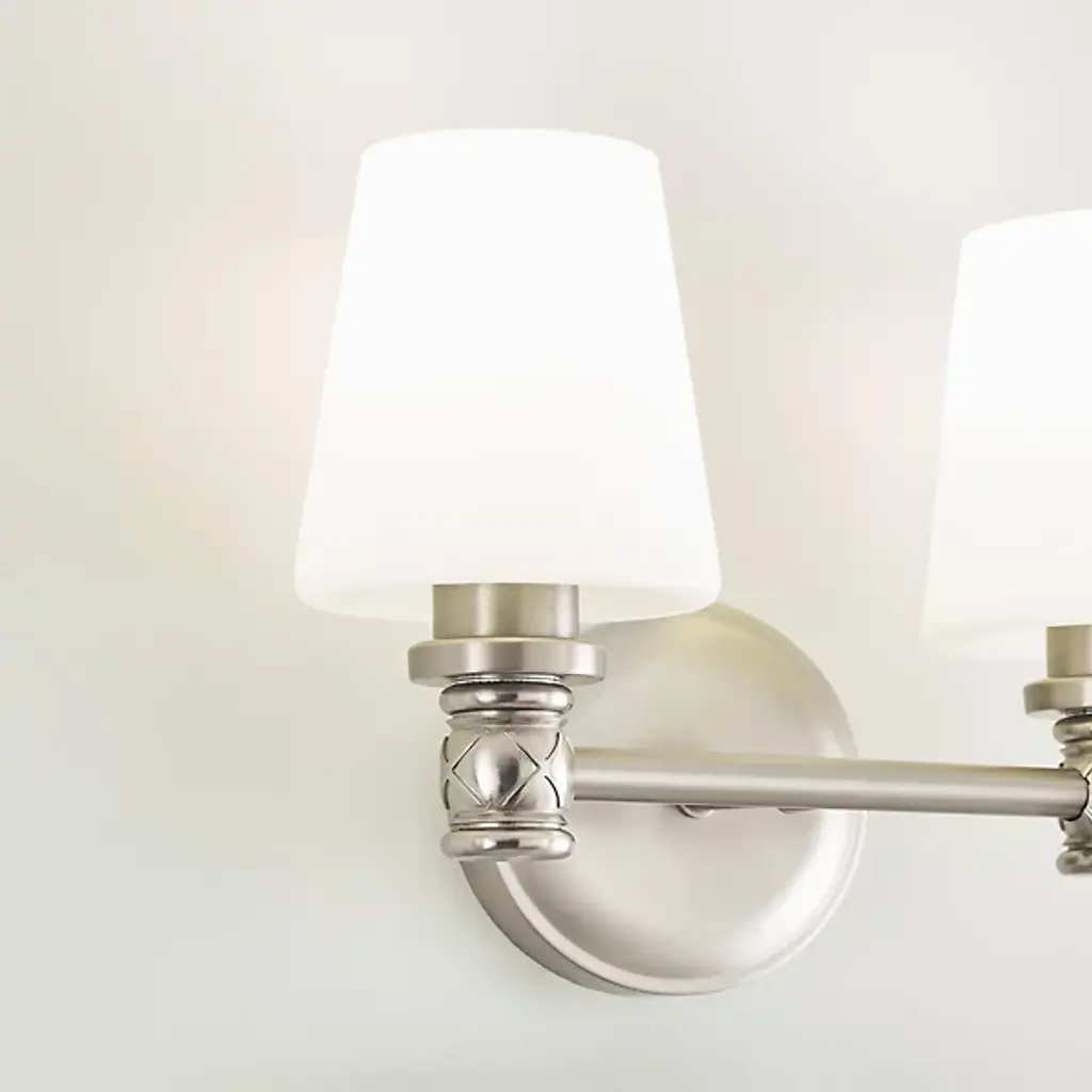 Give a fresh twist to bathroom decors with the Xavierre Vanity Light by Visual Comfort Studio, formerly known as Sean Lavin. This bath light stands out from the standard ones with its stylish silhouette and sophisticated design. The light fixture features a sleek metal bar which runs horizontally, connecting two lamp shades. Its metal holders are made with interesting x-shaped patterns that add an extra dimension to the design. This vanity light is verified for damp rating, making it a great choice for your bathrooms.