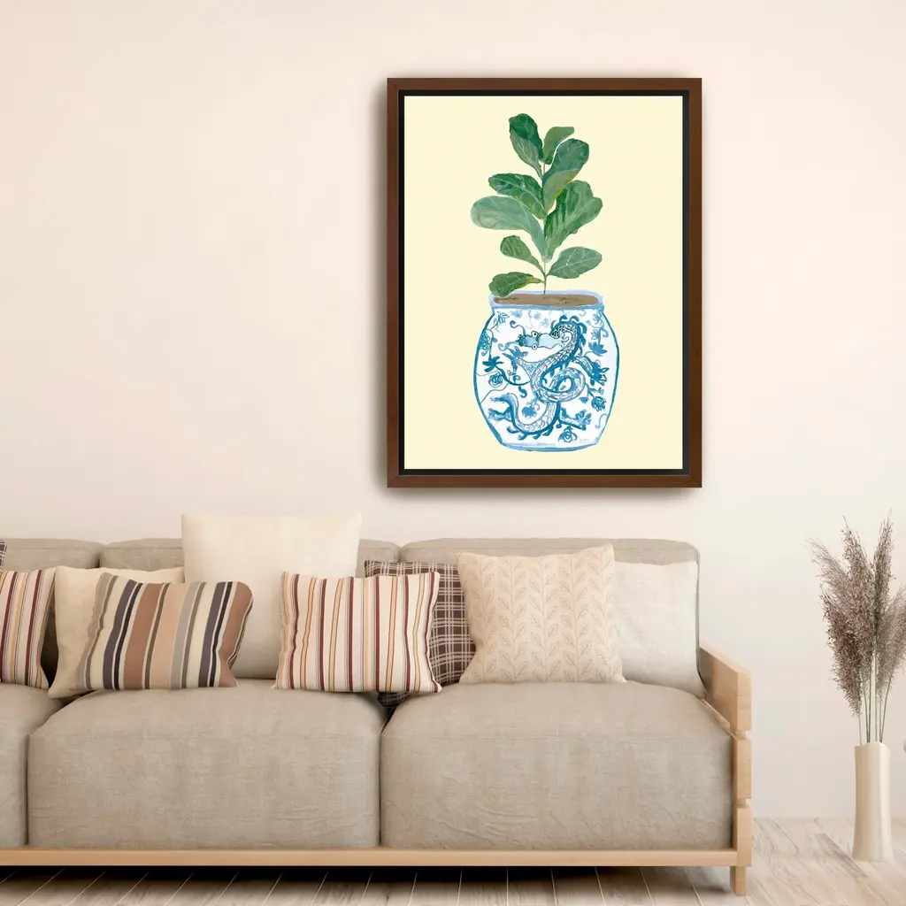 Elevate your space with this elegant minimalist plant in vase canvas art print. Featuring a simple yet striking design, this artwork beautifully captures the essence of nature in a clean, modern aesthetic. The serene colors and delicate lines create a calming atmosphere, perfect for enhancing any room in your home.Available in black frame, dark walnut frame and oak frames, or as a frameless canvas. Our Gallery Wrap Canvas Prints are proudly assembled with high quality materials in California, USA. Each piece is printed on a thick, archival grade canvas using Giclee technology. It is then hand-stretched by our experienced artisans over solid pine bars, which will not warp over time. The final product is a piece personally crafted for you to confidently display on your wall. Care and Assembly: Ensure that the location of your piece has little to no exposure to heat, sunlight, and moisture. Wipe clean, only if needed. Each piece includes a sawtooth hanger to hang on your wall vertically.