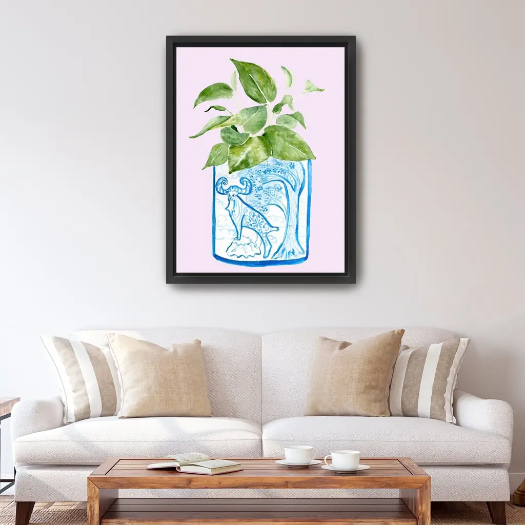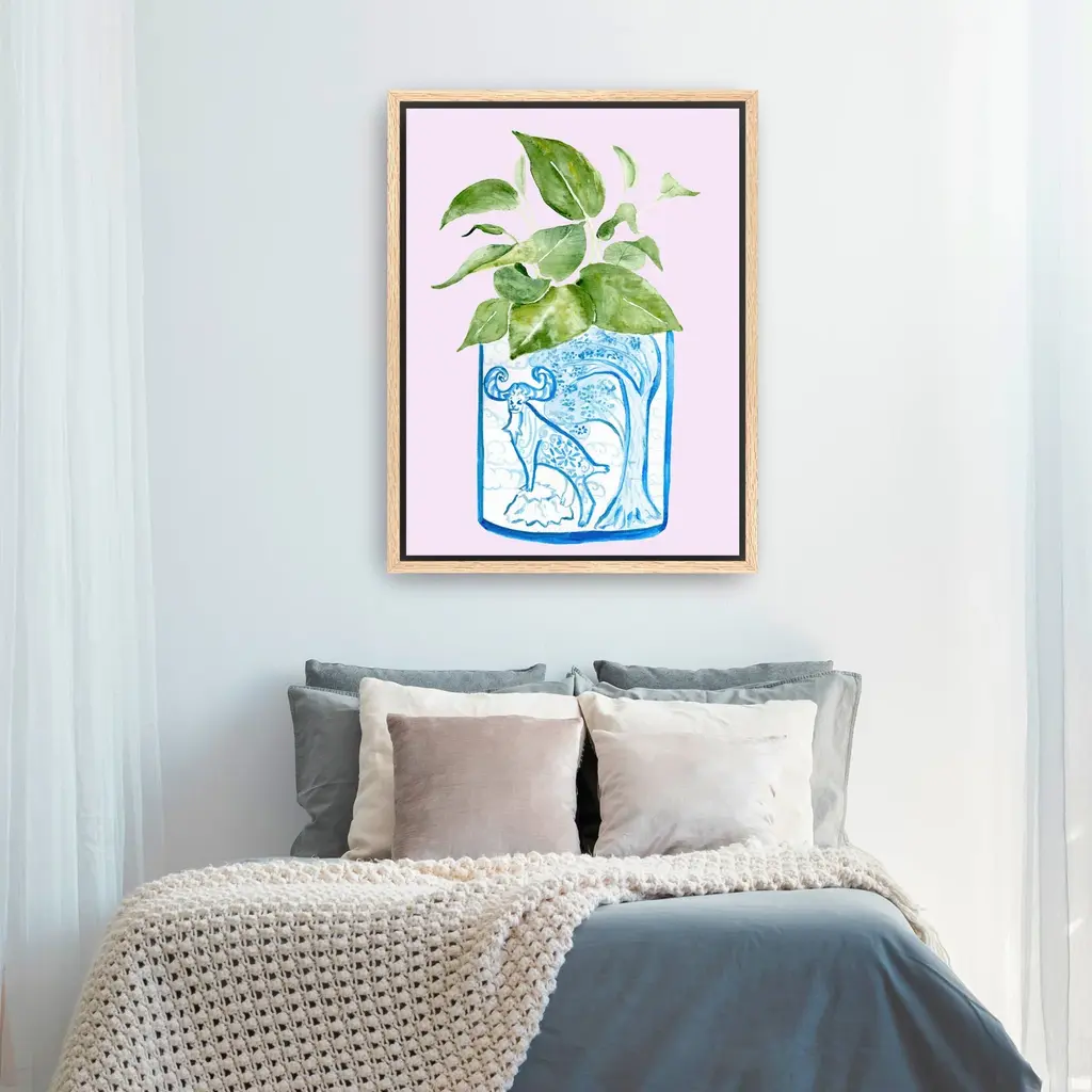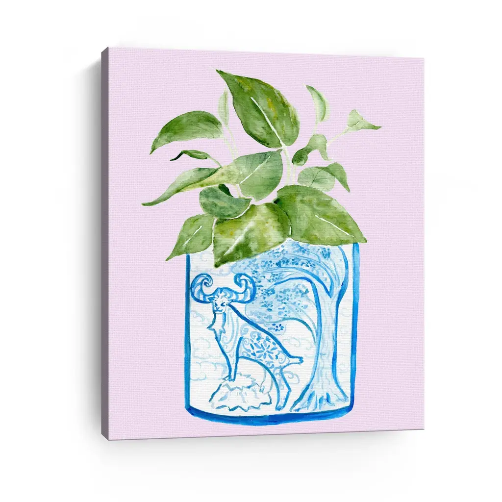 Elevate your space with this elegant minimalist plant in vase canvas art print. Featuring a simple yet striking design, this artwork beautifully captures the essence of nature in a clean, modern aesthetic. The serene colors and delicate lines create a calming atmosphere, perfect for enhancing any room in your home.Available in black frame, dark walnut frame and oak frames, or as a frameless canvas. Our Gallery Wrap Canvas Prints are proudly assembled with high quality materials in California, USA. Each piece is printed on a thick, archival grade canvas using Giclee technology. It is then hand-stretched by our experienced artisans over solid pine bars, which will not warp over time. The final product is a piece personally crafted for you to confidently display on your wall. Care and Assembly: Ensure that the location of your piece has little to no exposure to heat, sunlight, and moisture. Wipe clean, only if needed. Each piece includes a sawtooth hanger to hang on your wall vertically.