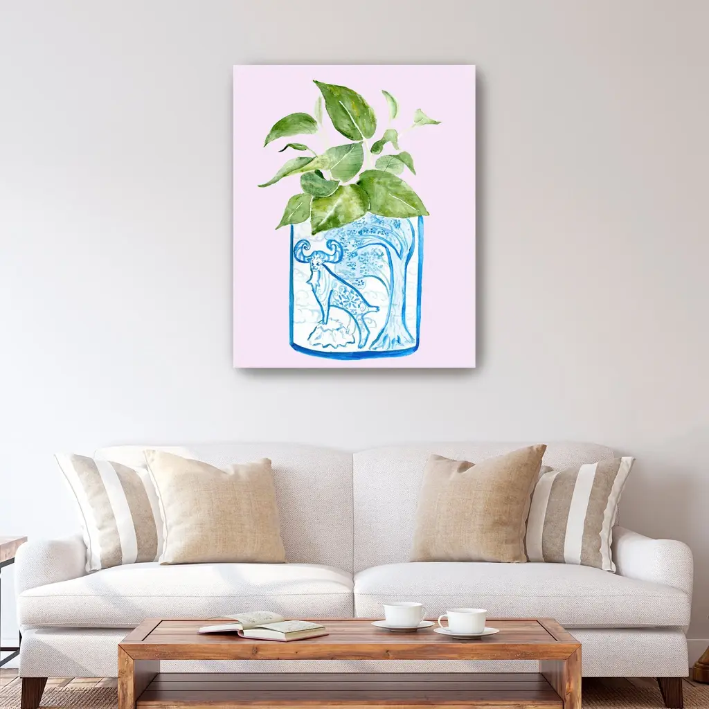 Elevate your space with this elegant minimalist plant in vase canvas art print. Featuring a simple yet striking design, this artwork beautifully captures the essence of nature in a clean, modern aesthetic. The serene colors and delicate lines create a calming atmosphere, perfect for enhancing any room in your home.Available in black frame, dark walnut frame and oak frames, or as a frameless canvas. Our Gallery Wrap Canvas Prints are proudly assembled with high quality materials in California, USA. Each piece is printed on a thick, archival grade canvas using Giclee technology. It is then hand-stretched by our experienced artisans over solid pine bars, which will not warp over time. The final product is a piece personally crafted for you to confidently display on your wall. Care and Assembly: Ensure that the location of your piece has little to no exposure to heat, sunlight, and moisture. Wipe clean, only if needed. Each piece includes a sawtooth hanger to hang on your wall vertically.